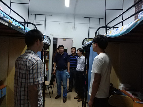 9月2日晚,学院副院长毕守东、副书记韩弥明和新生辅导员一行走访了新生宿舍,为新生带去了亲切的问候与关爱。领导和老师们亲切地询问了新生同学饮食是否习惯、住宿环境是否适应,并特意叮嘱寝室室友同学之间要相互照应,学会独立,尽快融入理学院这个大家庭。本次走访慰问,有利于新生尽早适应学校生活,也增强了师生之间的沟通交流,促进构建和谐融洽的师生关系。
