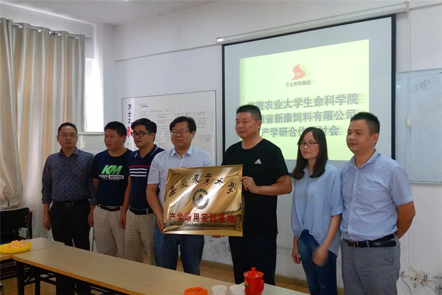 江海洋代表学院与安徽省新康饲料有限公司签订了安徽农业大学生命科学学院产学研实践基地协议。学院领导及专家一行在企业负责人陪同下对安徽省新康饲料有限公司车间及生产基地进行了实地考察。(张宽朝 通讯员:魏晓飞)