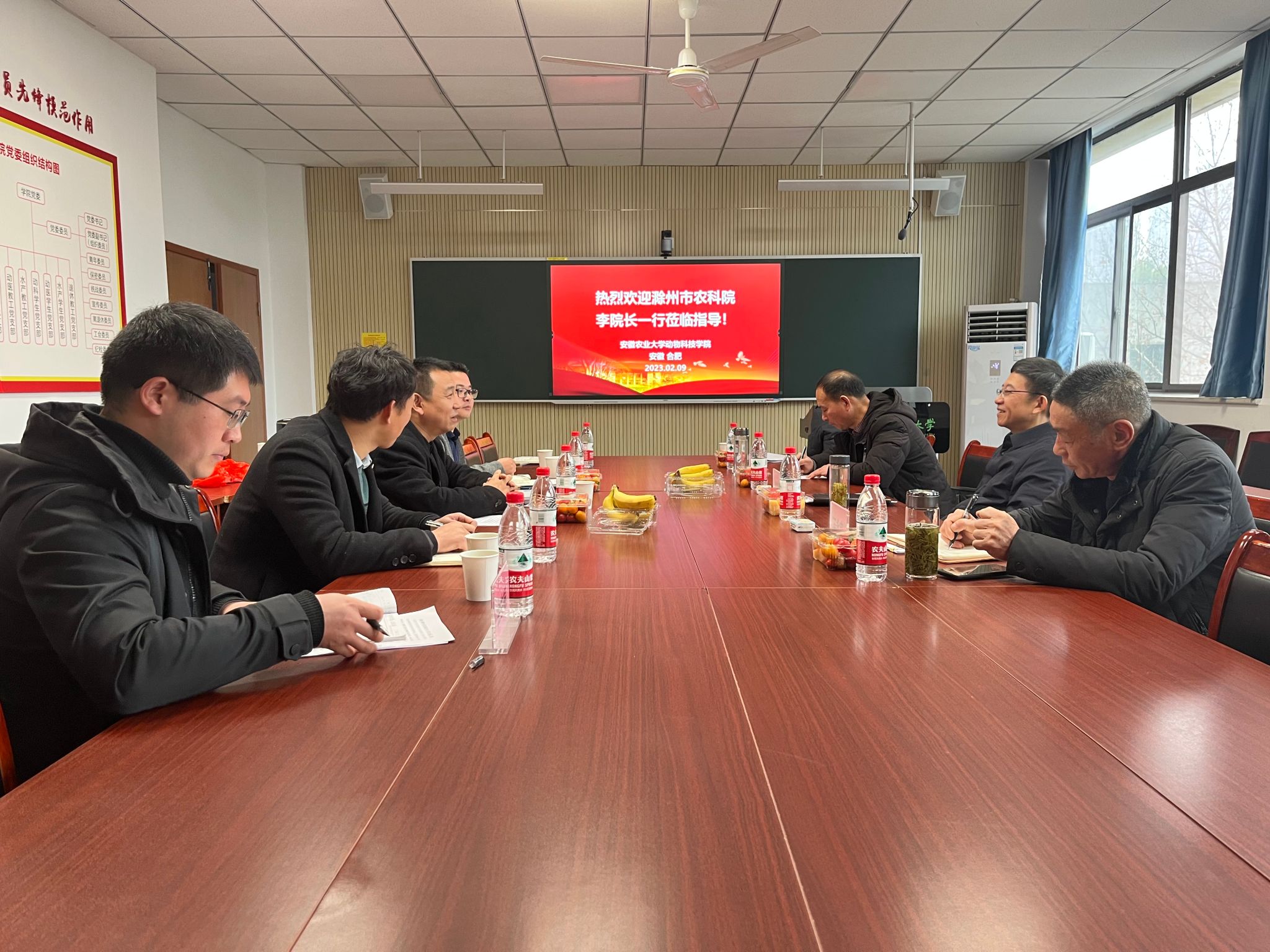 本网讯 2月9日,滁州市农科院院长李文晋一行来动物科技学院就进一步深化合作进行调研交流。学院院长张子军主持座谈会,水产养殖系相关教师参加会议。