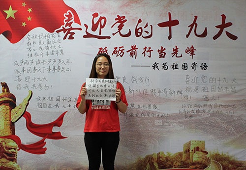 入党积极分子纷纷响应学院的号召,在学院一楼“我为祖国寄语”幕布前通过为祖国写寄语的方式,献上自己的美好祝愿,表达拳拳爱国之心。