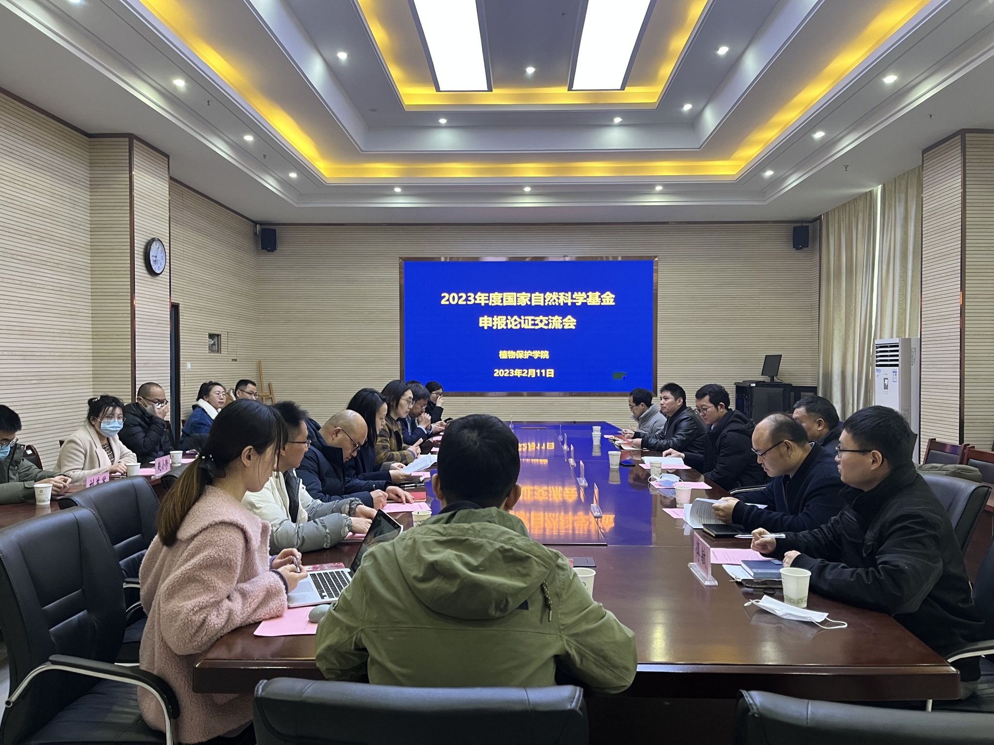 本网讯 2月11日,植物保护学院召开2023年度国家自然科学基金申报论证交流会,特邀中国农业科学院植物保护研究所宁约瑟研究员到会指导。院党委书记刘柳、常务副院长潘月敏、植物病理学系主任和基金申报人20余名教师参加会议,会议由副院长张华建主持。