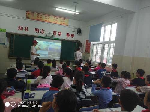 本网讯 为更好提升工学院学子的社会责任感,在全院学生中弘扬“奉献、友爱、互助、进步”的志愿服务精神,9月27日下午,工学院组织志愿者深入颐和佳苑小学课堂,开展“科技之声入学堂”志愿服务活动。