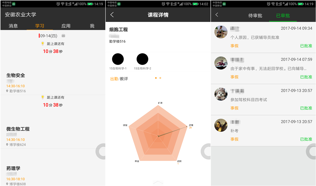 学院在定期召开的辅导员专题工作会议、全院教职工大会上多次强调并反馈学生课堂教学情况。吴国卿在新学期召开的全院教职工大会上指出,信息化考勤是学院近两年主动作为、积极探索的成果,是学院课堂管理有力的抓手,该信息化课堂助手在全院师生大力支持和配合下经过不断完善和改进,现已具有适合我院学生实际、可操作性强、数据真实可靠的特点,希望各位老师能够进一步积极主动融入到“三风”建设工作中,经常使用和研究信息化考勤软件以及数据分析终端,同时,对信息化在促进学风、教风中的运用提出更好的建设性意见和建议,为学院“三风”建设做出新的贡献。