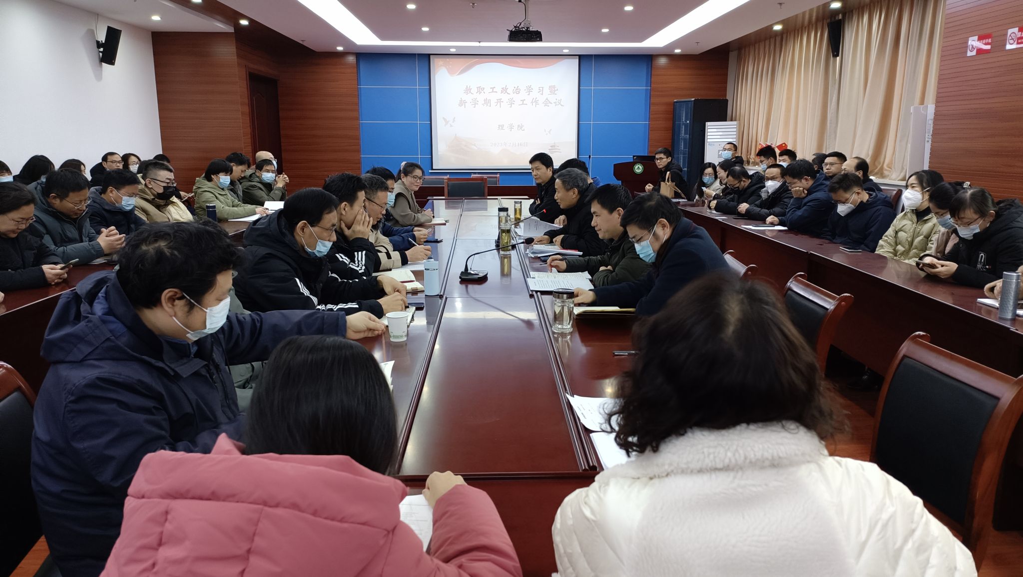 本网讯 为更好的谋划落实好新学年学院重点工作,2月16日下午,理学院在中西部大楼639会议室召开教职工政治学习暨新开学工作会议。会议由学院党委书记王冬平主持,全体教职工参加会议。