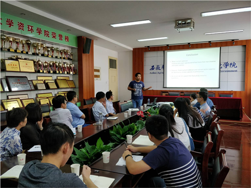本网讯 10月9日下午,应资源与环境学院和农田生态保育与污染控制安徽省重点实验室邀请,德国康斯坦茨大学刘艳杰博士来我校资源与环境学院开展学术交流。资源与环境学院相关学科教师及生态学研究生参加了报告会,报告会由资源与环境学院副院长谈应权主持。
