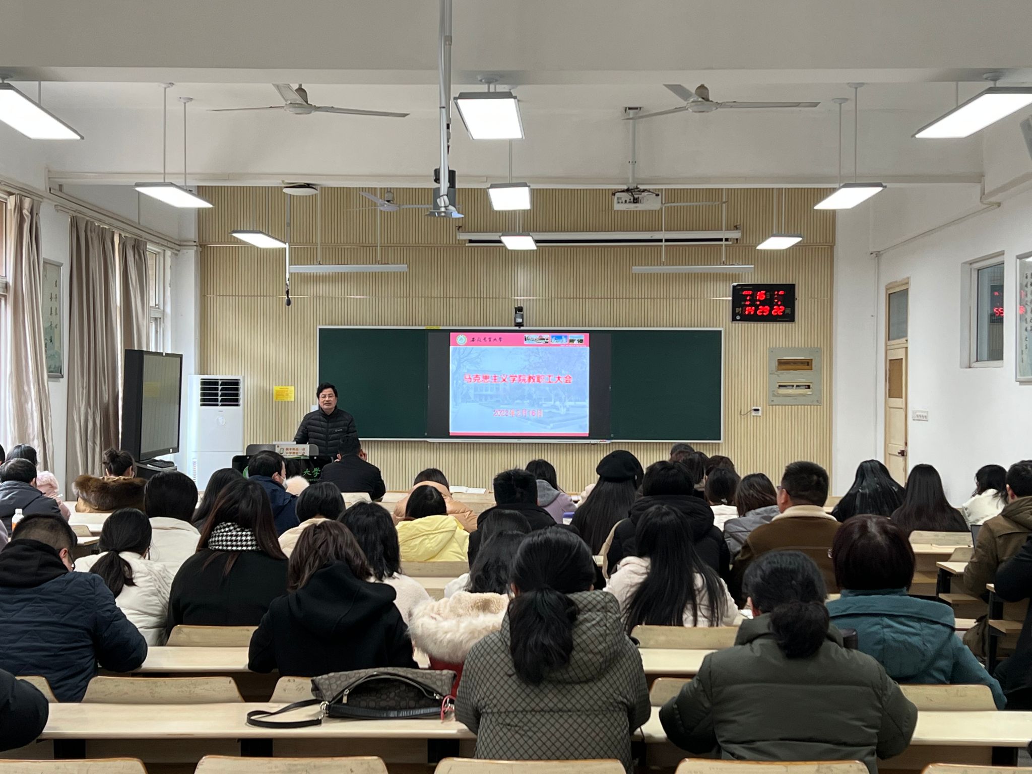 本网讯 2月16日下午,马克思主义学院在人文楼101会议室召开马克思主义学院新学期教职工大会,会议由学院党委书记孙超主持,学院全体教职工参加会议。