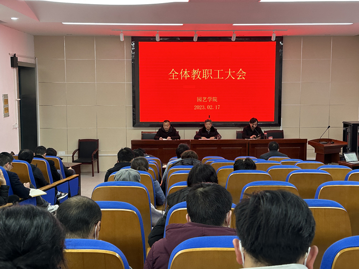 本网讯 2月17日下午,园艺学院在二教245报告厅召开新学期全体教职工大会。学院党政领导、全体教职工参加会议。会议由学院党委书记朱绍友主持。