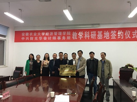本网讯 10月11日下午,经济管理学院与中兴财光华会计师事务所教学科研基地的签约仪式在经管楼304会议室举行,院长栾敬东,副院长刘鹏凌,会计学系系主任孟枫平,中兴财光华会计事务所安徽分所所长陈发勇,副所长吕贤莲出席签约仪式,会计学系所有老师参加了签约仪式。签约仪式由刘鹏凌主持。