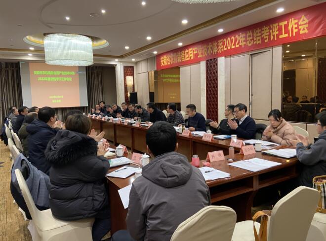 本网讯 2月17日,安徽省农机装备应用产业技术体系2022年度总结考评工作会在合肥举行。省农业农村厅科教处处长纵风云、农机装备处处长张道华、农机管理处处长陈发明,省农业机械技术推广总站站长江洪银,省农业机械试验鉴定站站长汤春桥,省农机安全监理站站长薛杰,我校科技处副处长叶辉及安徽省农机装备应用产业技术体系全体成员参加了会议。会议由省农机装备应用产业技术体系首席专家、工学院院长陈黎卿主持。