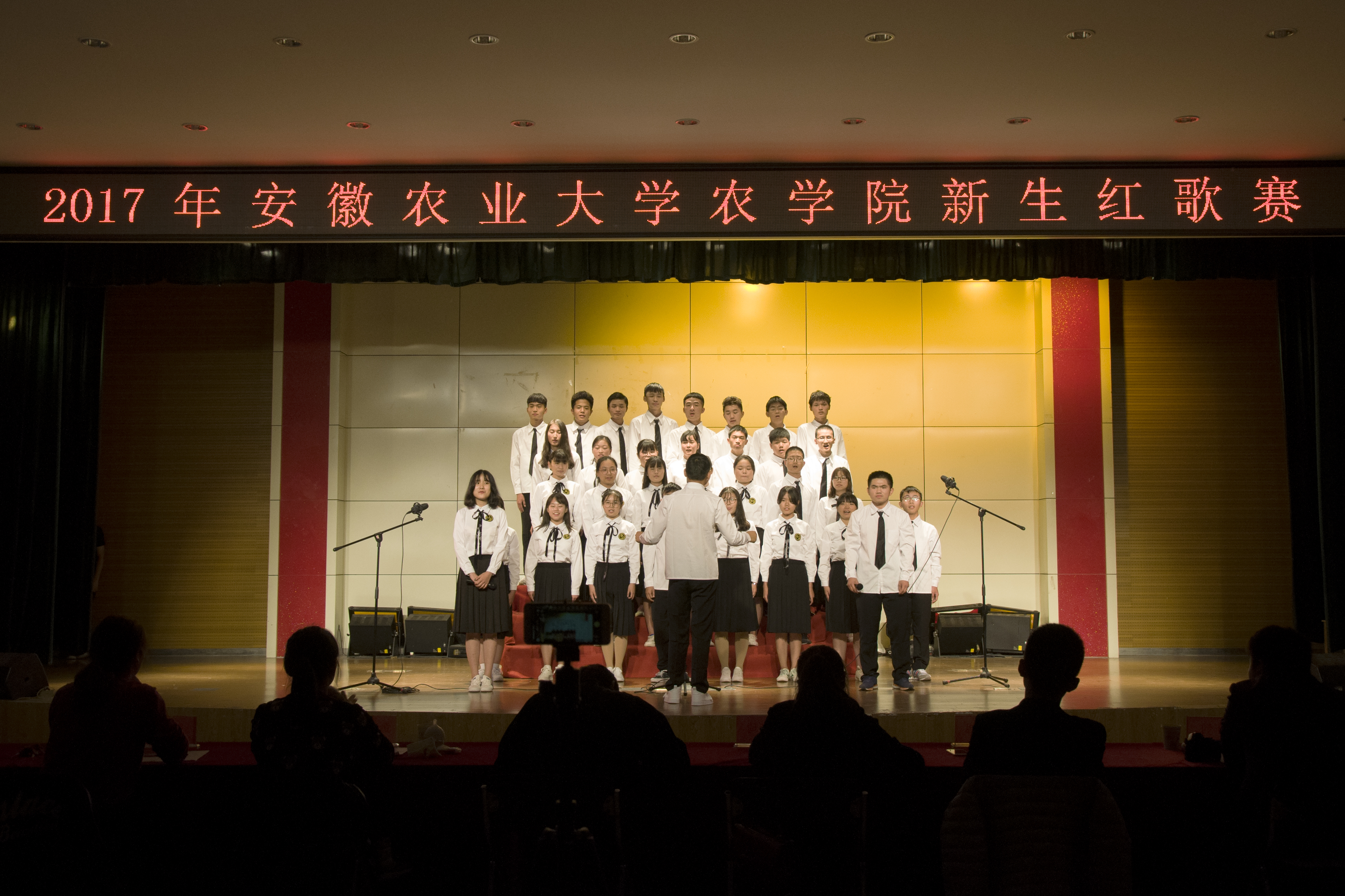 本网讯为迎接党的十九大胜利召开,营造积极向上、丰富多彩的校园文化氛围,进一步发挥主题团日活动在团员青年思政教育中的重要作用,10月12日晚,安徽农业大学农学院2017级新生红歌赛在欣苑小礼堂成功举行,农学院2017级8个团支部参加此次比赛。