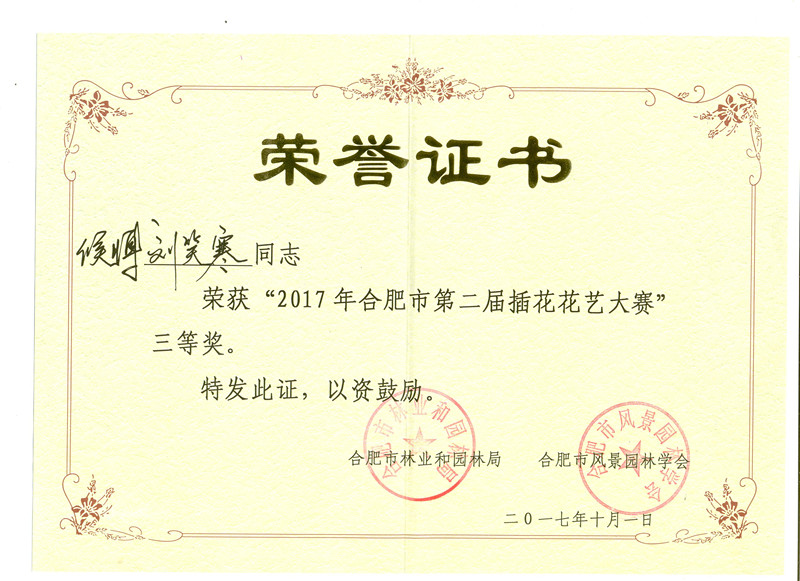 10月上旬,合肥市第二届插花花艺大赛在包公园浮庄拉开帷幕。本次比赛中,在观赏园艺系王华老师指导下,同学们积极参加培训,认真备赛。最终,学院2014级园艺专业侯博同学成功进入决赛,凭借现场插花作品《惜月》荣获大赛三等奖。近期,王华老师即将带领同学们参加安徽省首届中国传统插花大赛。