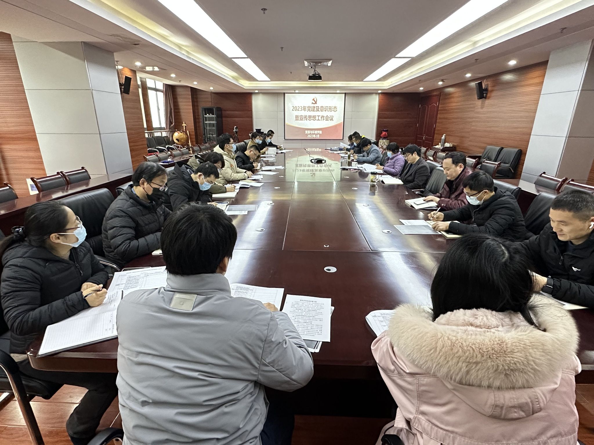 本网讯 2月22日下午,资源与环境学院召开党建与意识形态暨宣传思想工作会议。学院党政领导、党委委员、党支部书记、系部负责人、两办人员和全体专职辅导员参加会议。学院党委书记王琼主持会议。