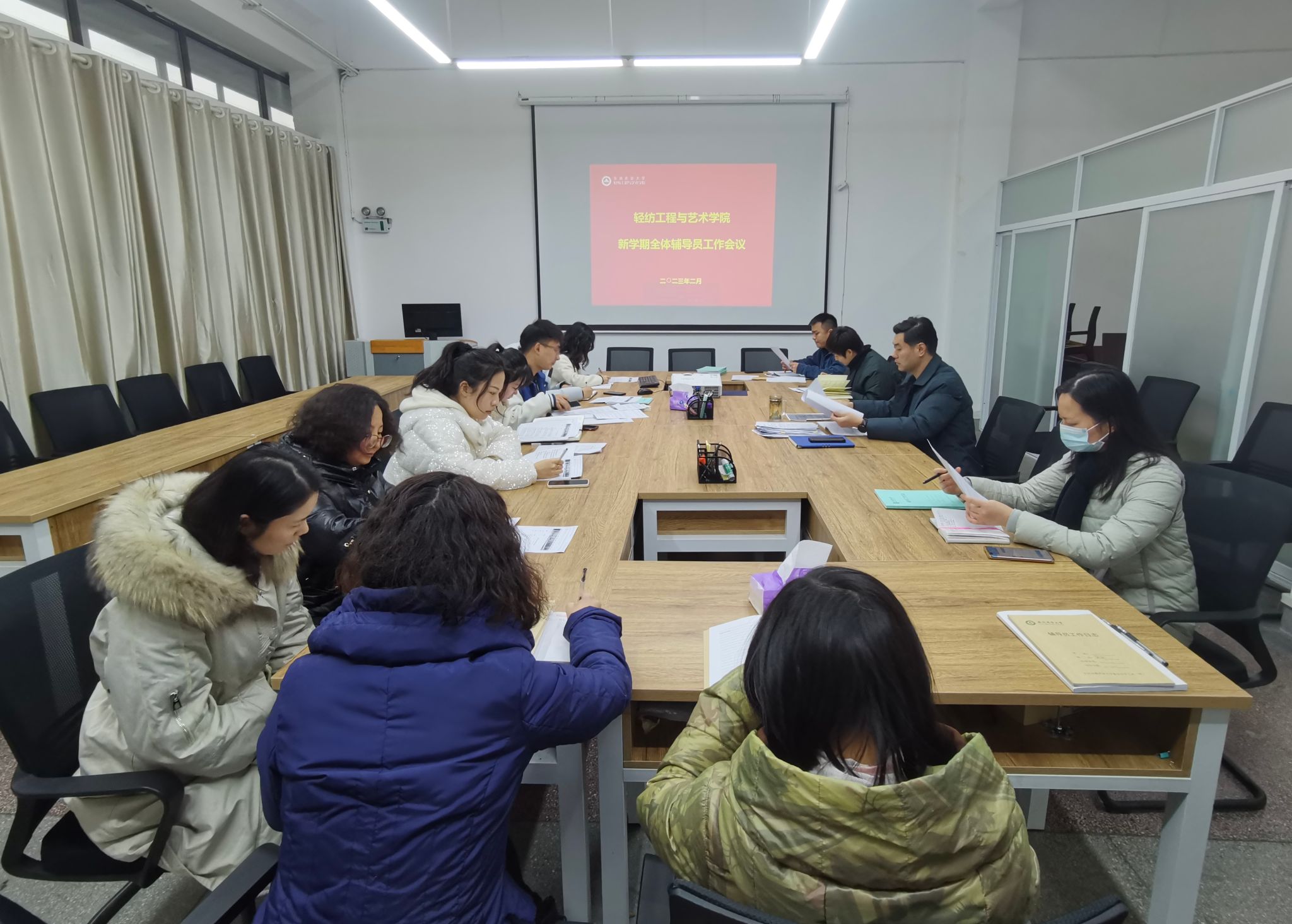 本网讯 新学期,新面貌,新目标。为进一步提高学生教育管理水平,更好地完成本学期学生工作任务和目标,维护校园安全稳定,扎实推进大学生思想政治教育工作。2月22日下午,轻纺工程与艺术学院在轻纺楼3A09会议室召开新学期辅导员工作务虚会。学院全体专兼职辅导员、研究生班主任参加本次会议。会议由学院党委副书记、纪委书记、副院长宋超主持。