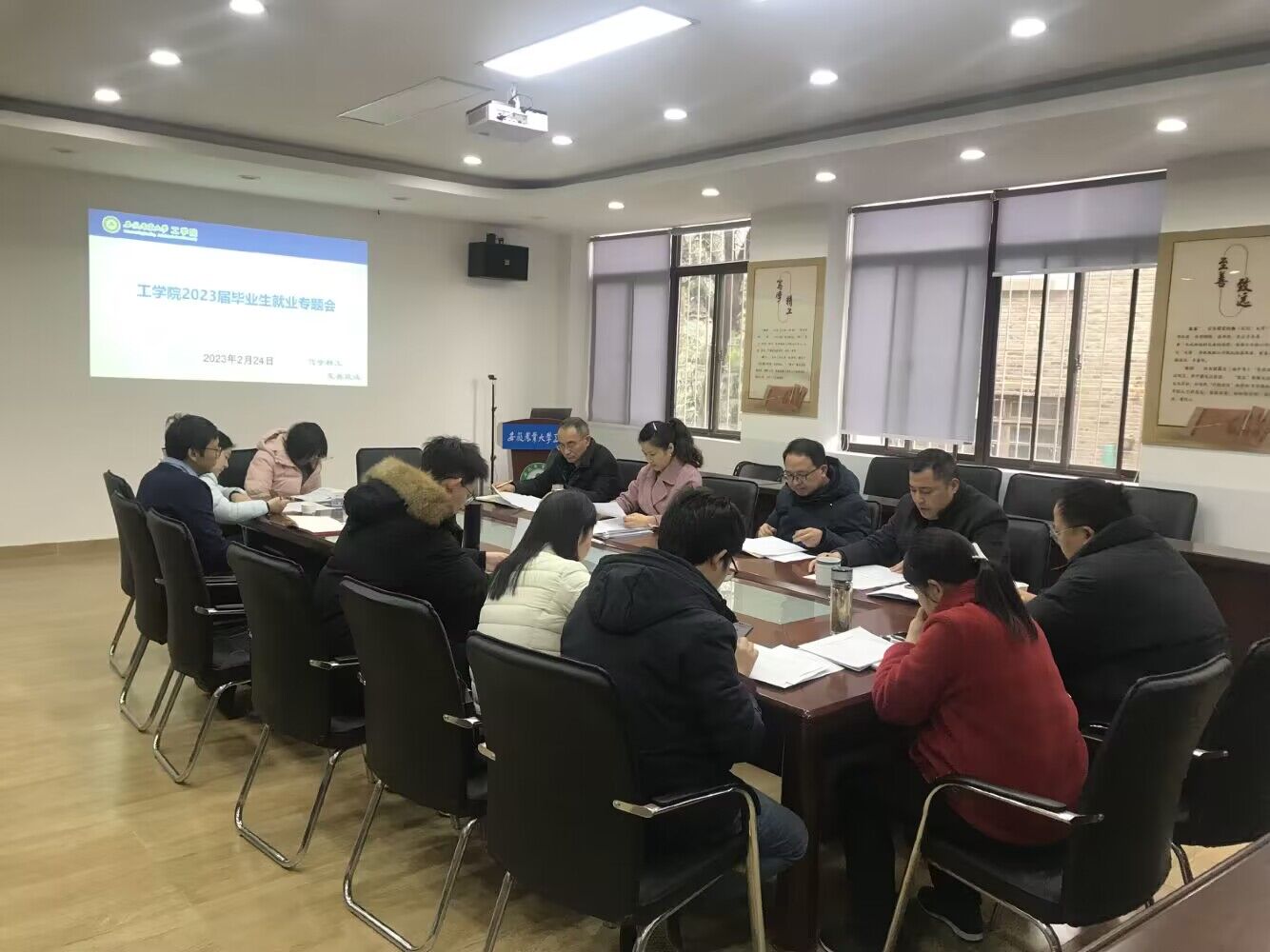 本网讯 2月24日,工学院召开2023届毕业生就业专题会,落实学校毕业生就业工作会会议精神,分析形势、明确目标、压实责任,推动做好2023届毕业生就业工作。院领导、系主任、毕业班辅导员参加会议,会议由院党委副书记张国学主持。
