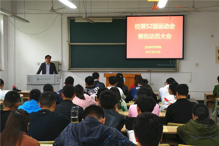 本网讯 10月23日中午,生命科学学院在九教125教室举行了校第52届运动会动员大会暨青年之声面对面活动。学院党委副书记、副院长吴国卿出席了大会,院团委老师、院学生分会主要学生干部及全体运动员参加了会议。