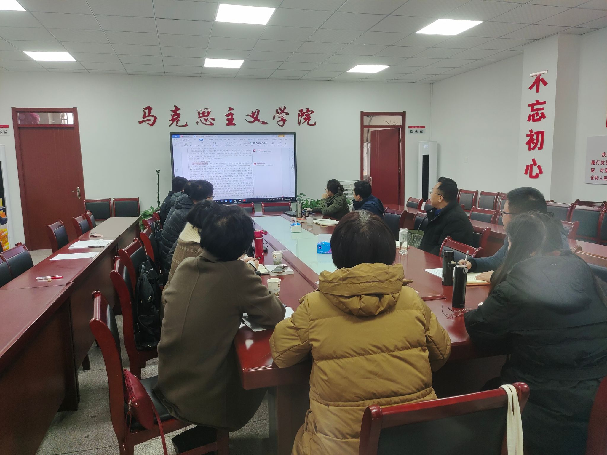 本网讯 为持续推进我院国家社科基金课题申报工作,进一步提升申报文本的质量和水平,2月25日—26日,马克思主义学院在人文楼302室召开了两场国家社科基金课题申报辅导论证会。学院特邀中国科学技术大学魏荣教授、合肥工业大学潘莉教授进行线下交流论证。学院院长方国武、教授委员会主任徐俊和课题申报的老师们参会。