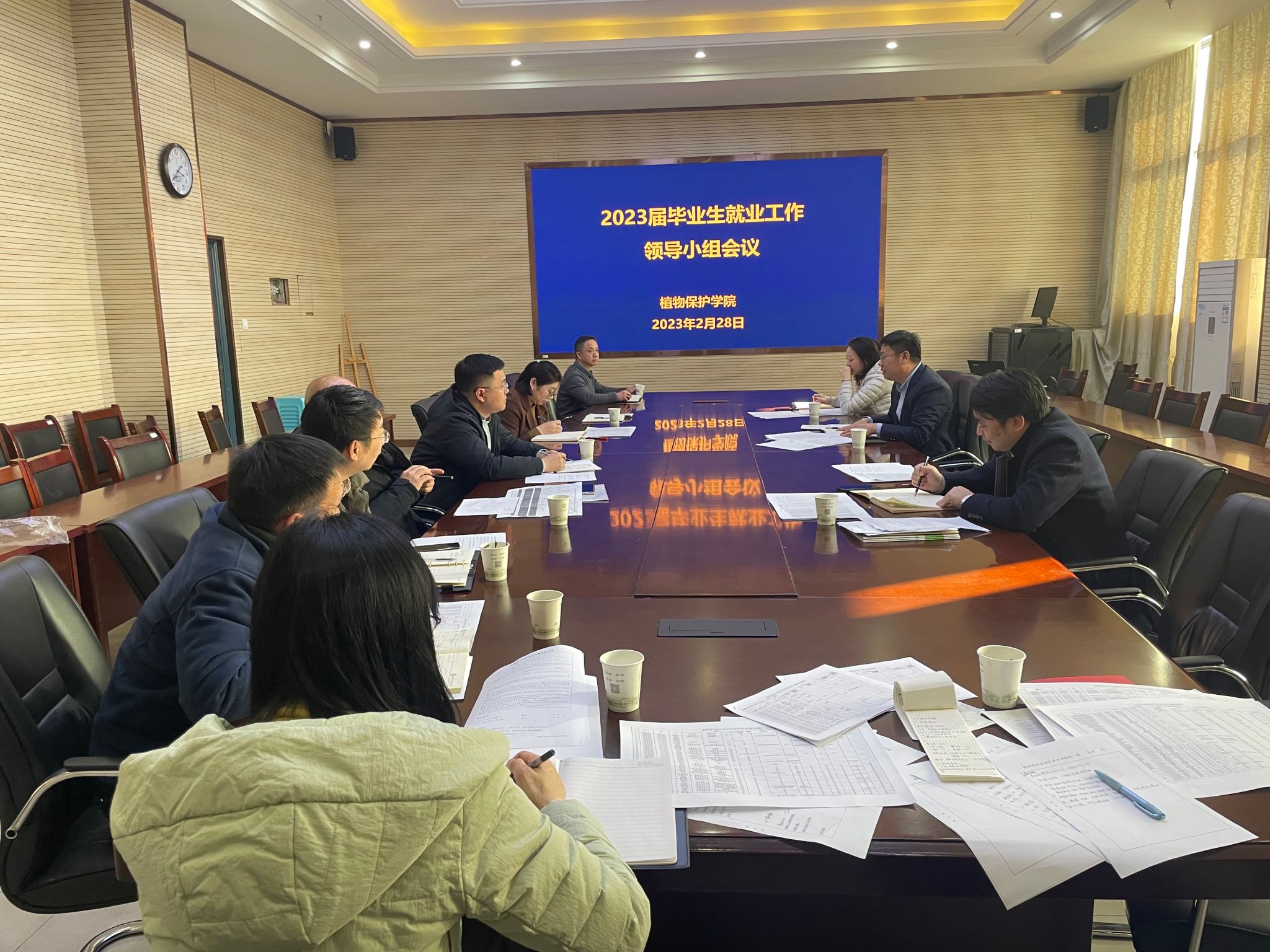 本网讯 2月28日,植物保护学院在中西部综合楼1213会议室召开2023届毕业生就业工作领导小组会议。领导小组组长、学院常务副院长潘月敏,领导小组副组长、学院副院长张华建出席会议。各系主任,研究生、本科生、高职生毕业班级辅导员参加会议。会议由领导小组副组长、学院党委副书记汪小强主持。