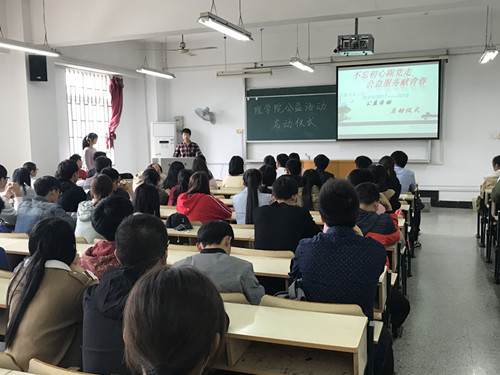本网讯为增强受资助学生的感恩意识,引导大学生开展公益活动,10月19日中午,理学院在八教317举行2017-2018年公益活动启动仪式,学院团委老师、校勤管中心代表、院学生分会公益部成员及部分受资助学生参加了仪式。