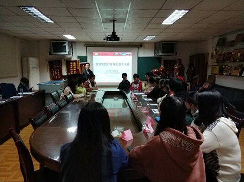 本网讯 为使学生了解企业招聘模式,掌握面试技巧,全面提高就业竞争力,10月25日晚,理学院在二教227会议室举行2017年职场模拟面试大赛。动物科技学院招生就业负责老师和理学院办公室老师应邀作为评委,来自2015级的15位选手参加比赛。