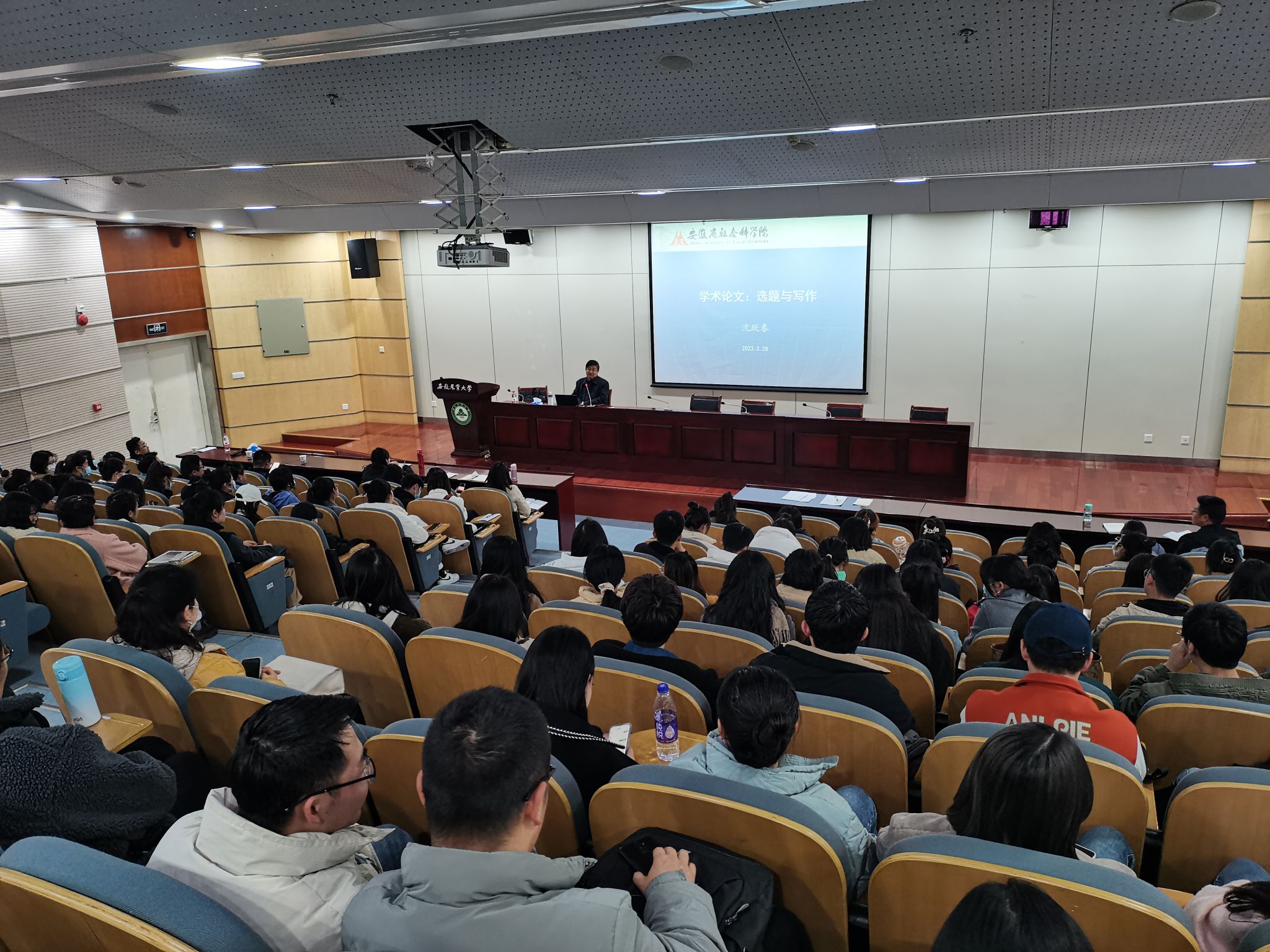 本网讯 为提升年轻教师科研水平,加强研究生学术论文写作能力,切实推进“我为师生办实事”走深走实,2月28日下午,我院特邀省社科院研究员、《江淮论坛》杂志社原主编沈跃春作题为“学术论文:选题与写作”的报告,学院党委书记孙超、部分教师、全体研究生参加了此次报告会,报告会由学院院长方国武主持。