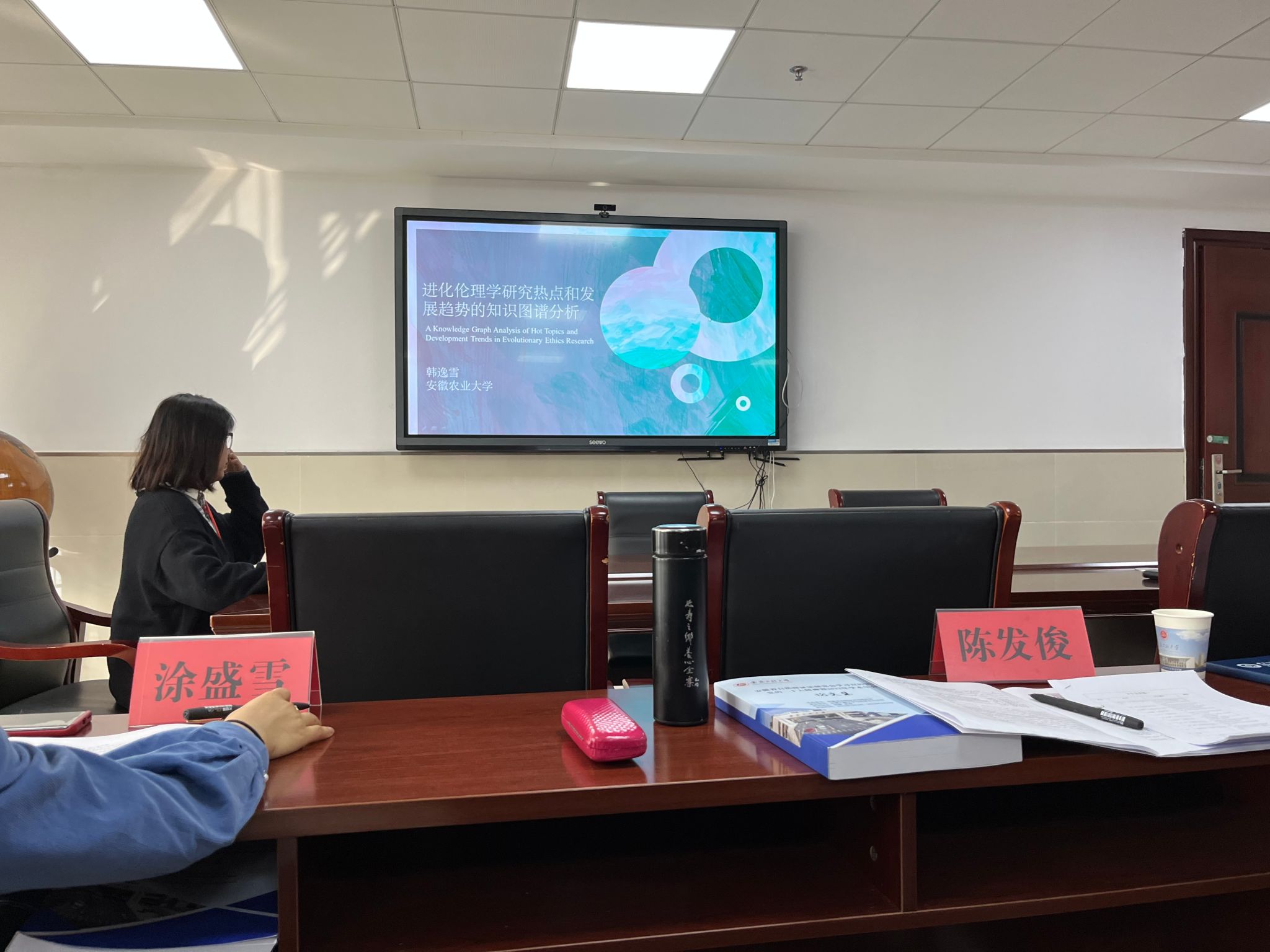 3月4日下午专题报告会上,韩逸雪作了题为《进化伦理学研究热点和发展趋势的知识图谱分析》的口头报告(指导教师刘燊教授)。通过引入“进化伦理学”这一新兴领域的发展脉络,指出深刻理解进化伦理学研究的重要性以及运用可视化技术探究进化伦理学研究的热点及未来趋势的必要性。报告呈现了近20年来国内外进化伦理学研究在发文数量、国际合作和主题分布等方面的特征,在此基础上,对进化伦理学研究未来发展趋势开展了进一步的分析和讨论,报告引发了与会学者的热烈讨论。