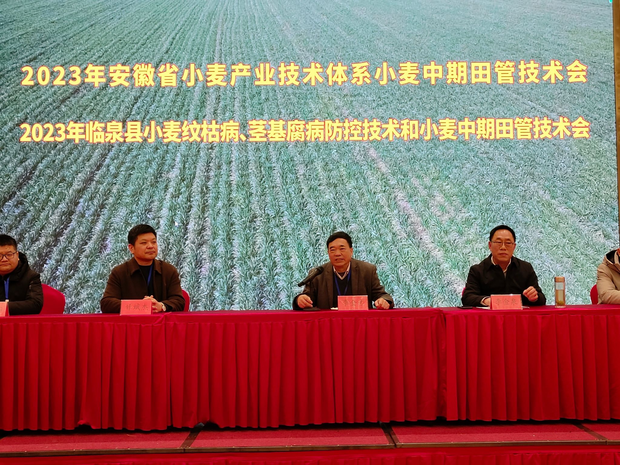 本网讯 为深入学习贯彻落实党的二十大精神,以深入推进“两强一增”行动为抓手,抢抓农时高质量做好春季小麦田间管理,为夏粮再获丰收奠定基础。3月1日,2023年安徽省小麦产业技术体系小麦中期田管技术现场观摩会在阜阳临泉召开。省小麦产业技术体系首席专家、岗位专家、综合试验站站长,阜阳市农业农村局、阜阳市农技推广中心、阜阳市农科院有关负责同志,临泉县农业农村局有关负责同志,县小麦技术推广专家,小麦种植大户等150余人参加现场会议。