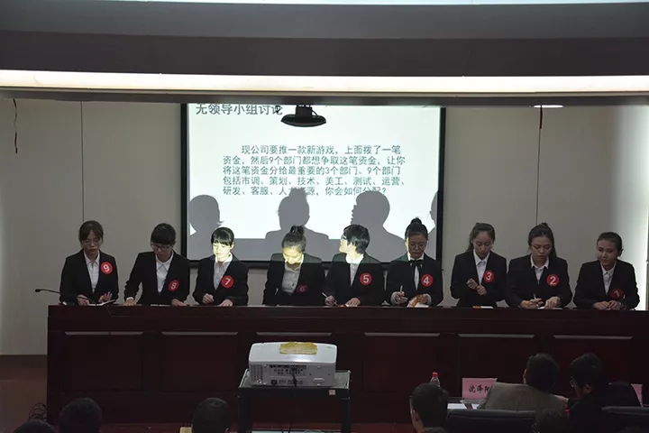 经过初赛的筛选,共有九名选手进入决赛。决赛分为无领导小组讨论、自我介绍、必答题、职场故事编说四个环节。在无领导小组讨论环节中,选手们围绕题目进行认真冷静的思考,有理有据的观点阐述和攻守兼备的自由发言以及详尽的总结陈述赢得了阵阵掌声。随后,选手们分别从学习情况、求职意向、职业认识、竞选优势、实践经历等方面通过精准的语言表达加上精美的PPT展示做了自我介绍。面对必答题环节的提问,选手们镇定自若、认真思考、从容作答。选手利用所给的关键词,结合具体事例,现场编说了一个个生动、寓意深刻的职场故事。随后,评委老师就选手们的表现逐一做出了点评,并从语言表达,逻辑思维及面试技巧等方面对比赛进行了总结。