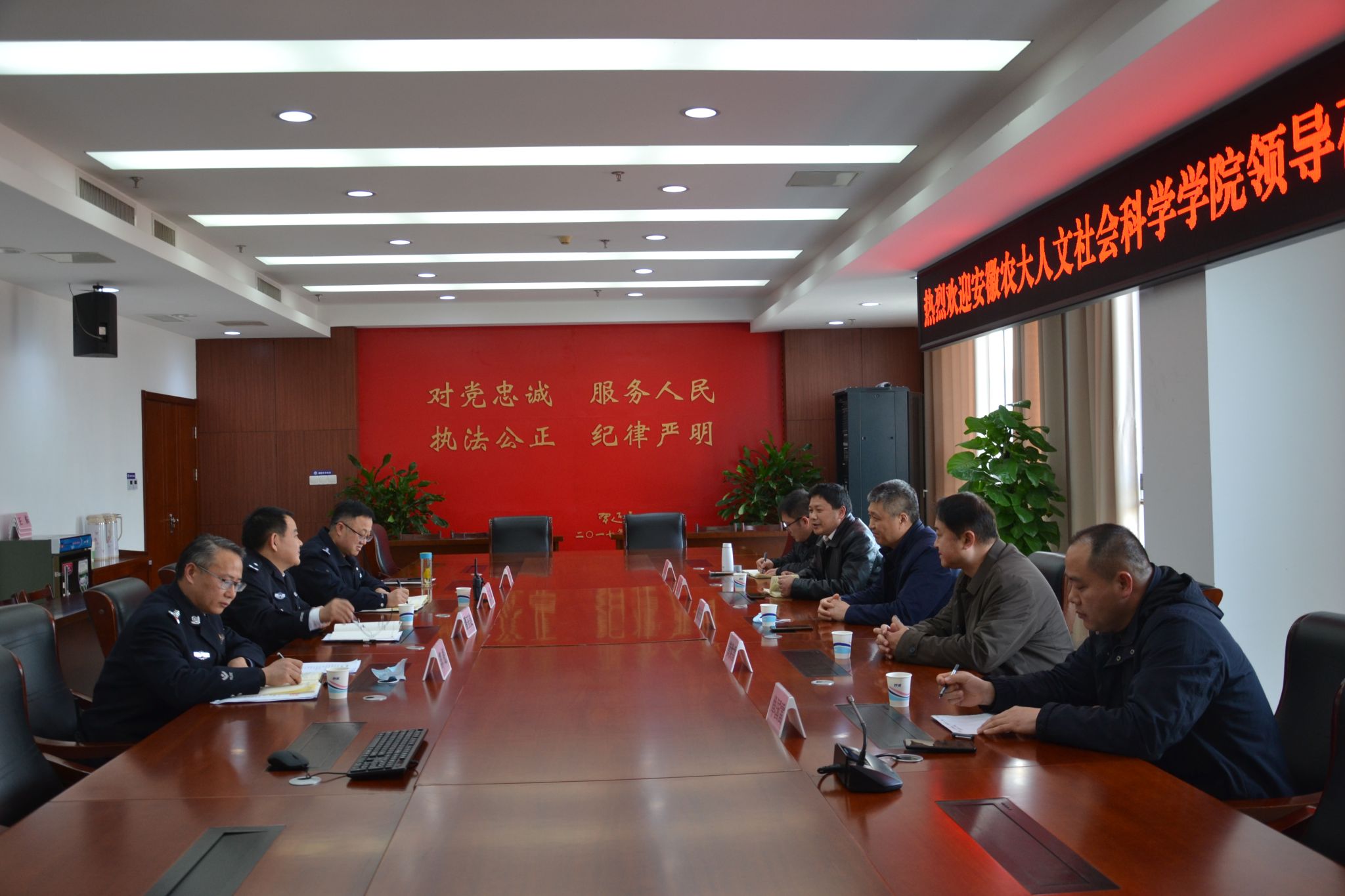 潘玉良介绍了合肥市强制隔离戒毒所情况。他指出,所里具备良好的硬件设备和多种形式的实务技能,能够给学院相关专业的建设和发展提供良好的资源。希望双方就成瘾行为干预研究、禁毒防艾培训等方面开展合作,进一步落实教育转化、让戒毒学员回归社会。合力开展深入基层的社会服务,助力地方社会稳定和经济发展。