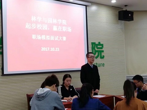 本网讯为引导学生积极就业、主动就业,林学与园林学院在校“就业指导月”期间举办“起步校园,赢在职场”职场模拟面试大赛,帮助学生切身了解职场不同岗位对基本素质和专业素养的要求。