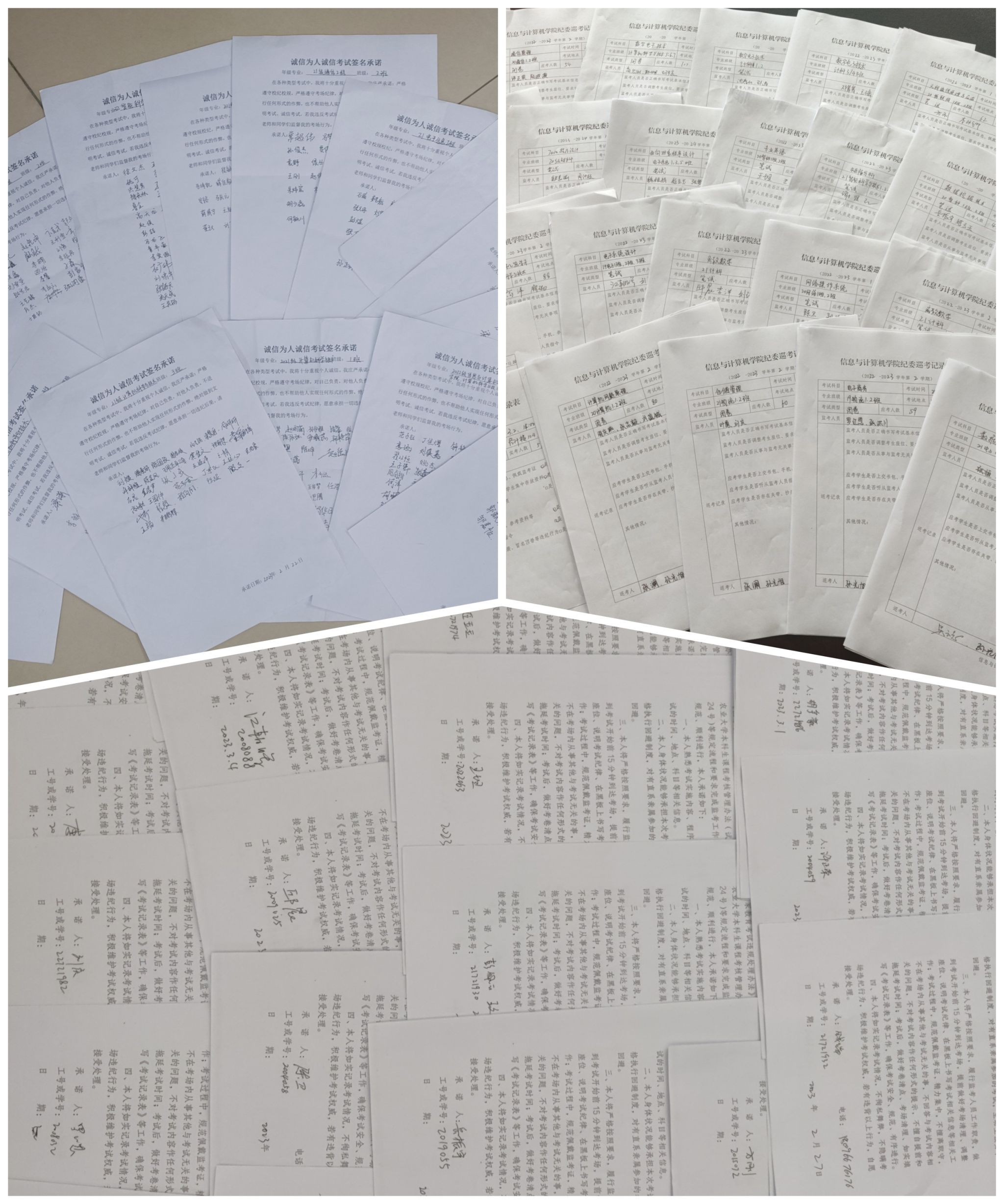 签订诚信承诺,规范放在心。为营造诚信环境,规范考试行为,严肃考风考纪,学院统一制定了《诚信为人诚信考试承诺书》,组织同学以班级为单位进行集中承诺,引导学生通过自身承诺强化个人遵章守纪意识,培养学生诚实守信的良好品德。