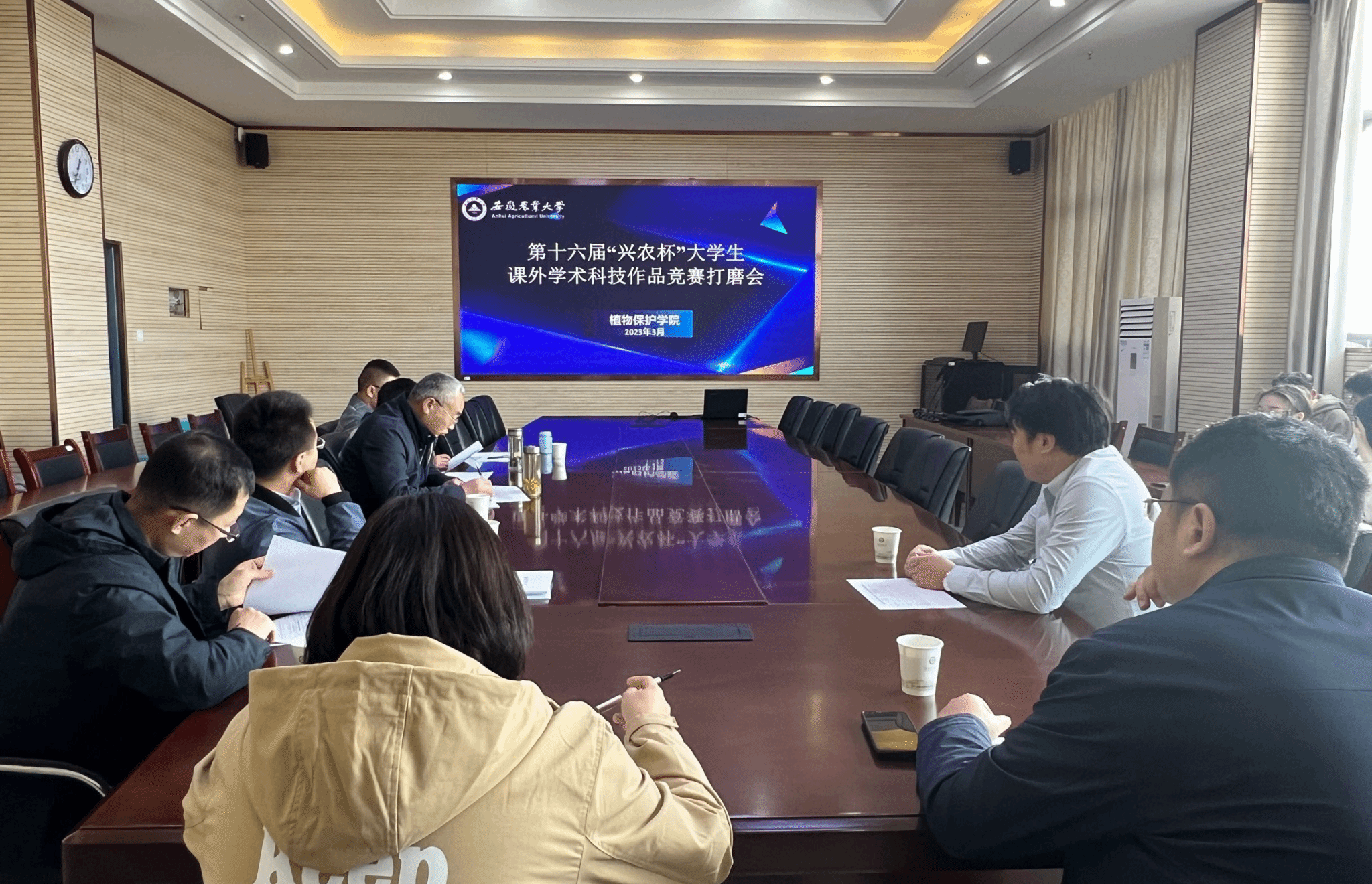 本网讯 3月7日中午,植物保护学院在中西部综合楼1213会议室举办“兴农杯”大学生课外学术科技作品竞赛院级申报作品打磨会。全国模范教师李桂亭教授,第十七届“挑战杯”全国二等奖指导教师张承启、丁朝阳应邀担任评委,各团队第一指导教师参加会议。学院副书记汪小强、副院长唐庆峰及各团队参赛同学参加会议。