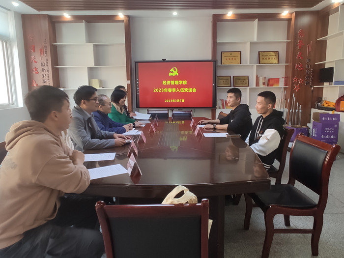 本网讯 3月7日下午,经济管理学院在302会议室顺利举办2023年春季入伍新兵欢送会。学院党委书记赵智、副院长宋燕平、副院长田涛、相关负责老师、2019级金融学专业赵翔和2021级农村发展专业于晓冲参加了此次会议。会议由院党委副书记、纪委书记、副院长吴国卿主持。