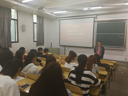 10月9日,园艺学院2015级园艺专业在二教240教室举办以“青春建功十九大 不忘初心跟党走”为主题的班会。辅导员叶振风指出,作为当代大学生不仅要用理论知识来武装自己,更要有一颗强大的内心,注重通过社会实践提高自身综合素质。交流环节,班级优秀团干和预备党员分享近期学习青年习近平的心得体会,纷纷表示作为新时期团员青年,争做“六有”大学生。