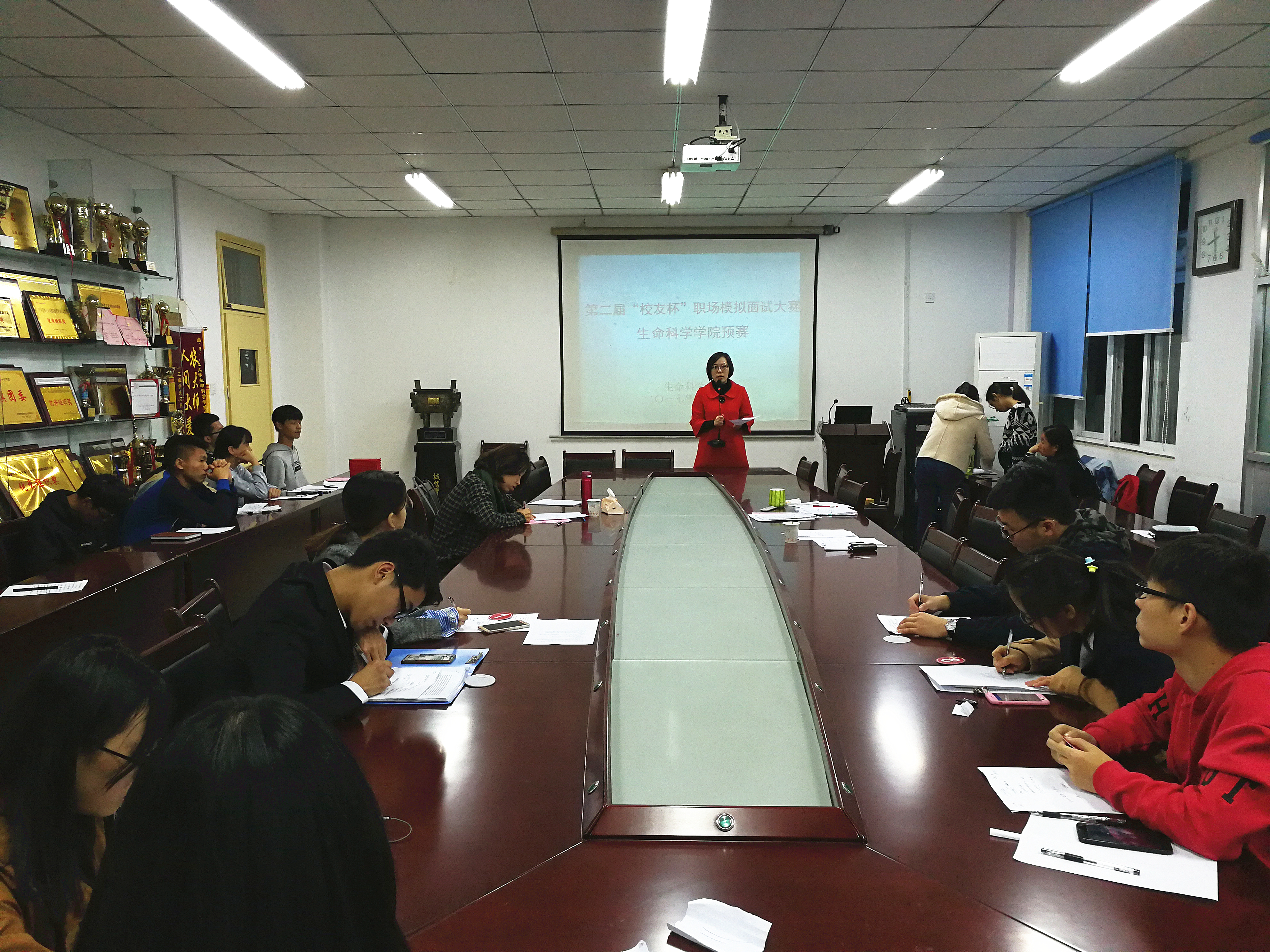 本网讯 为培养在校学生求职技巧,提高学生的就业能力,生命科学学院在校“就业指导月”期间举办“起步校园,赢在职场”职场模拟面试大赛,帮助学生切身了解职场不同岗位对基本素质和专业素养的要求。10月31日,学院在十教216会议室举办了大赛预赛。校招生就业处老师及部分兄弟学院相关负责老师担任比赛评委,2014级、2015级部分同学参加了此次比赛。
