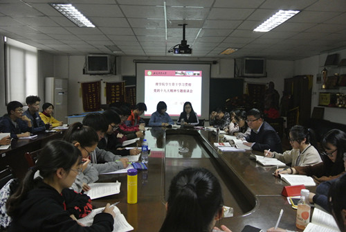 本网讯 11月3日下午,理学院在二教227会议室组织学生骨干开展学习党的十九大精神专题座谈会,学院学生骨干到场参会,院党委副书记、副院长韩弥明主持座谈。
