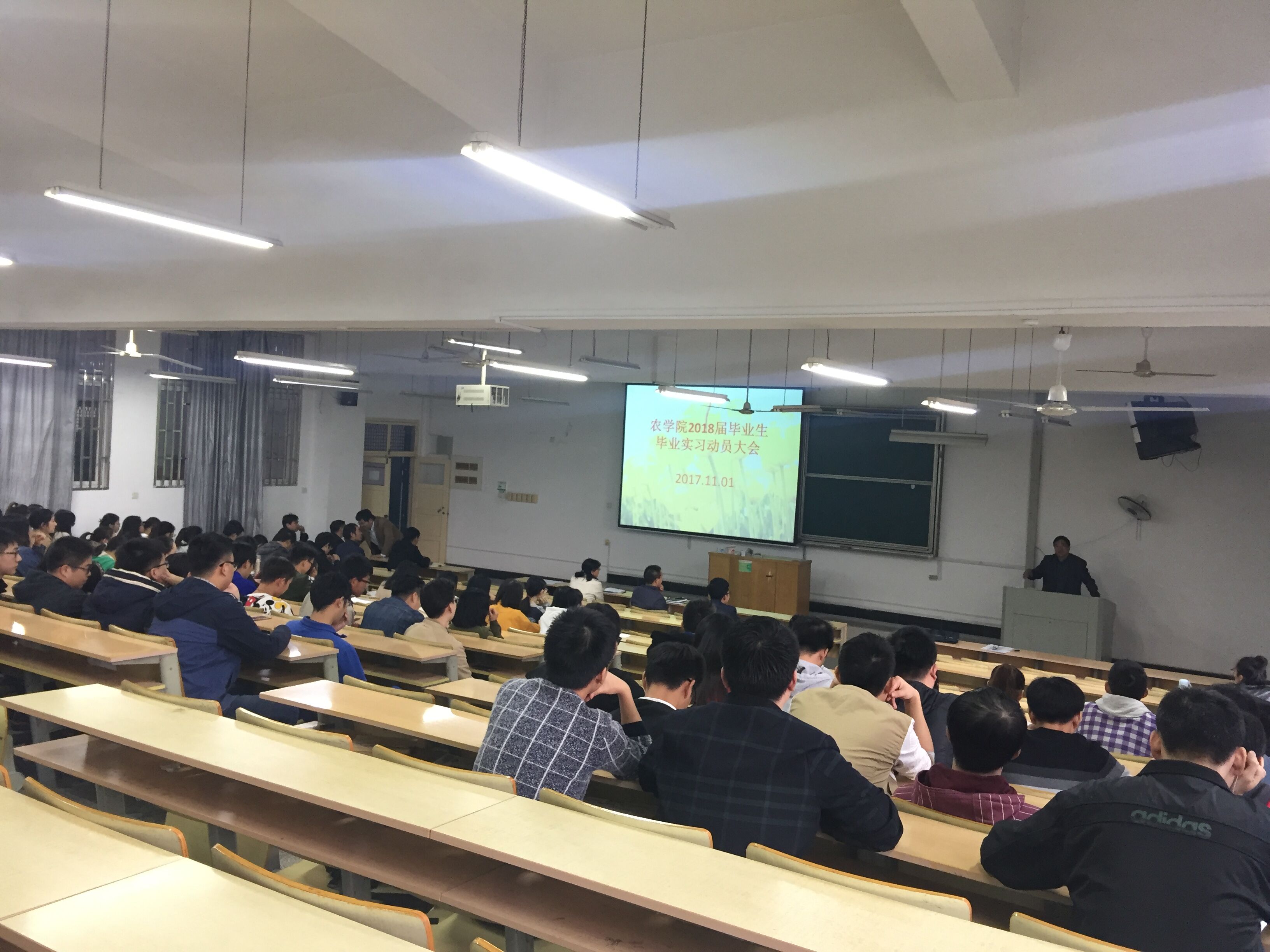 本网讯 11月1日下午,农学院毕业生实习动员大会在博学楼227召开,农学院党政领导和各系主任、教师代表、辅导员老师和2018届全体毕业生参加了会议,会议由教学副院长常成主持。