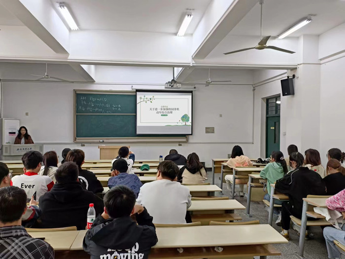 本网讯 为加强校园电动自行车管理,维护校园交通安全。经济管理学院91个班级积极开展电动自行车综合治理主题班会,各班通过PPT、视频、案例分析等形式进行学习讨论。