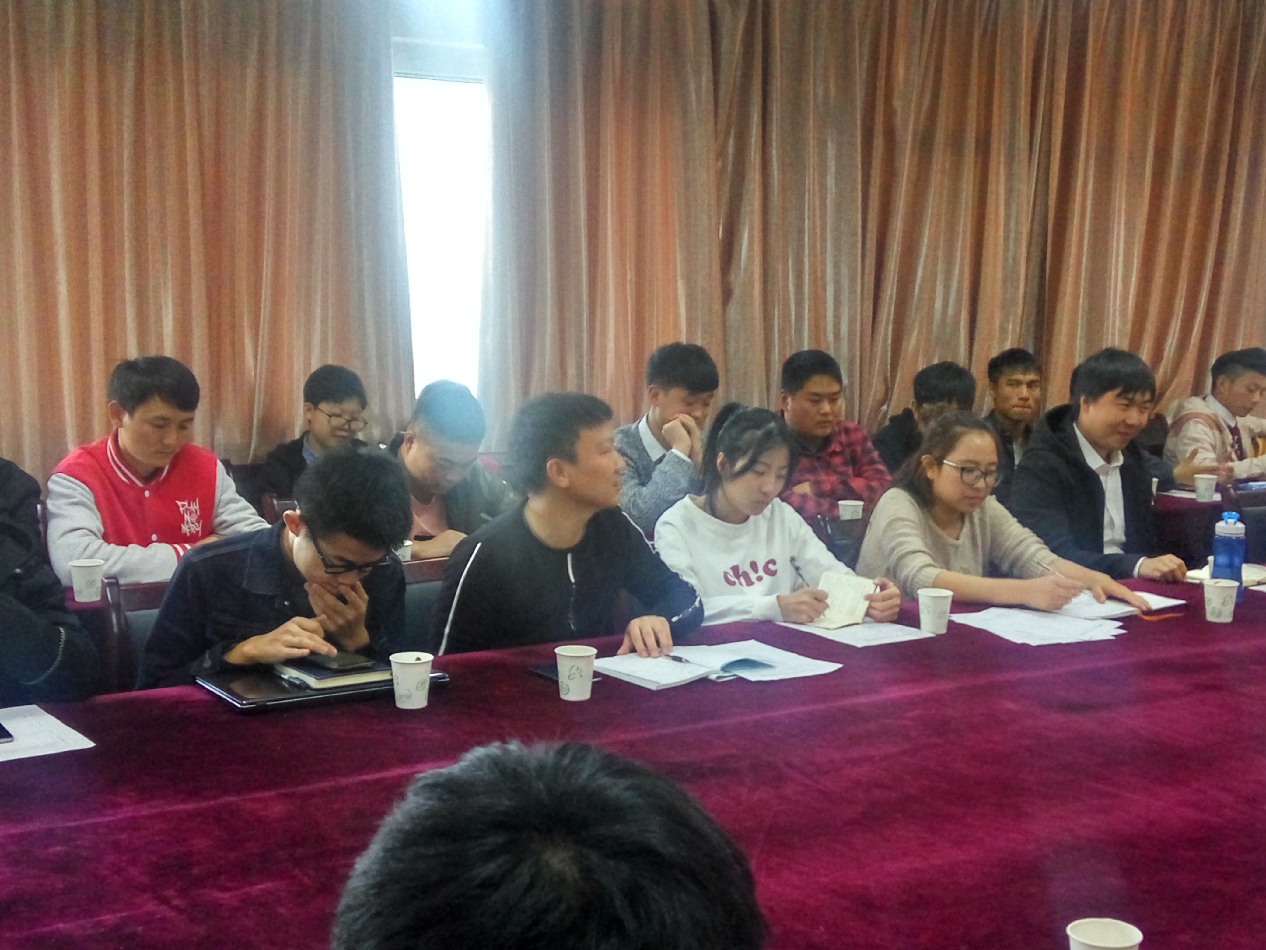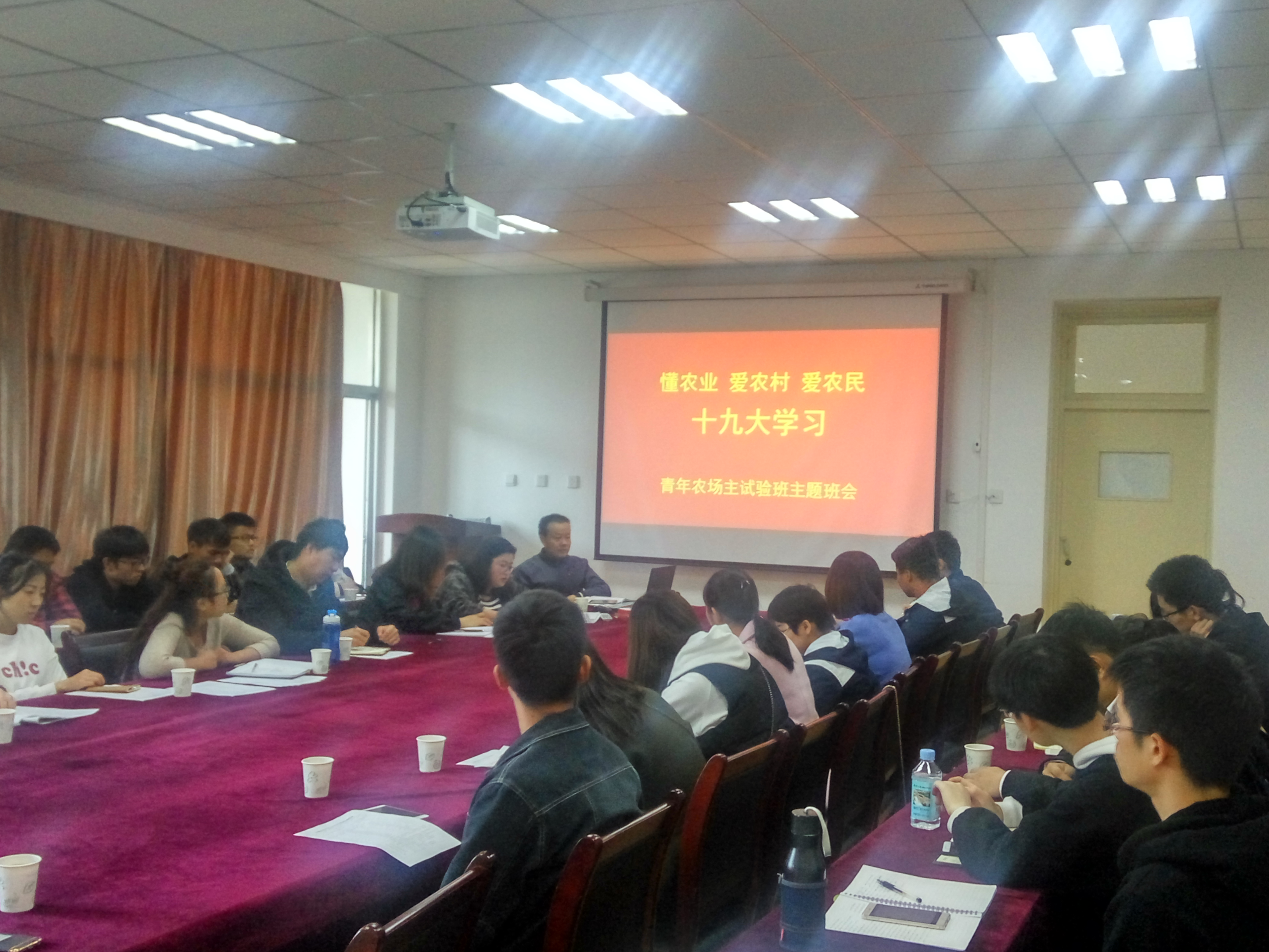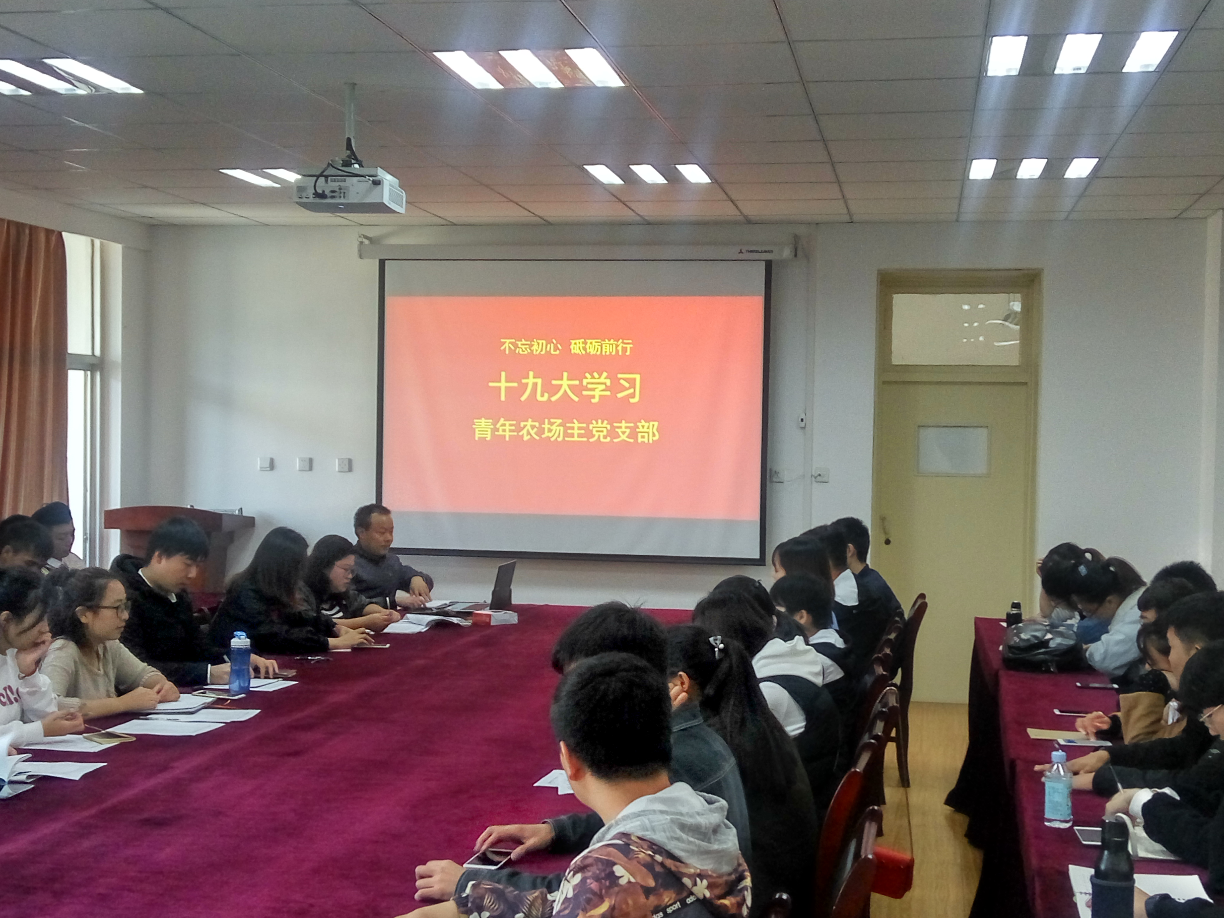 本网讯 为深入学习、全面把握十九大报告的实质和丰富内涵,明确“青年兴则国家兴,青年强则国家强”的青年使命,11月4日,农学院青年农场主党支部在十教518会议室召开不忘初心,砥砺前行十九大报告专题学习及研讨会。会议由农学院青年农场主支部书记李婧主持,农学院党委副书记鄢高翔,专职辅导员郑青及全体青年农场主支部党员和入党积极分子参加。
