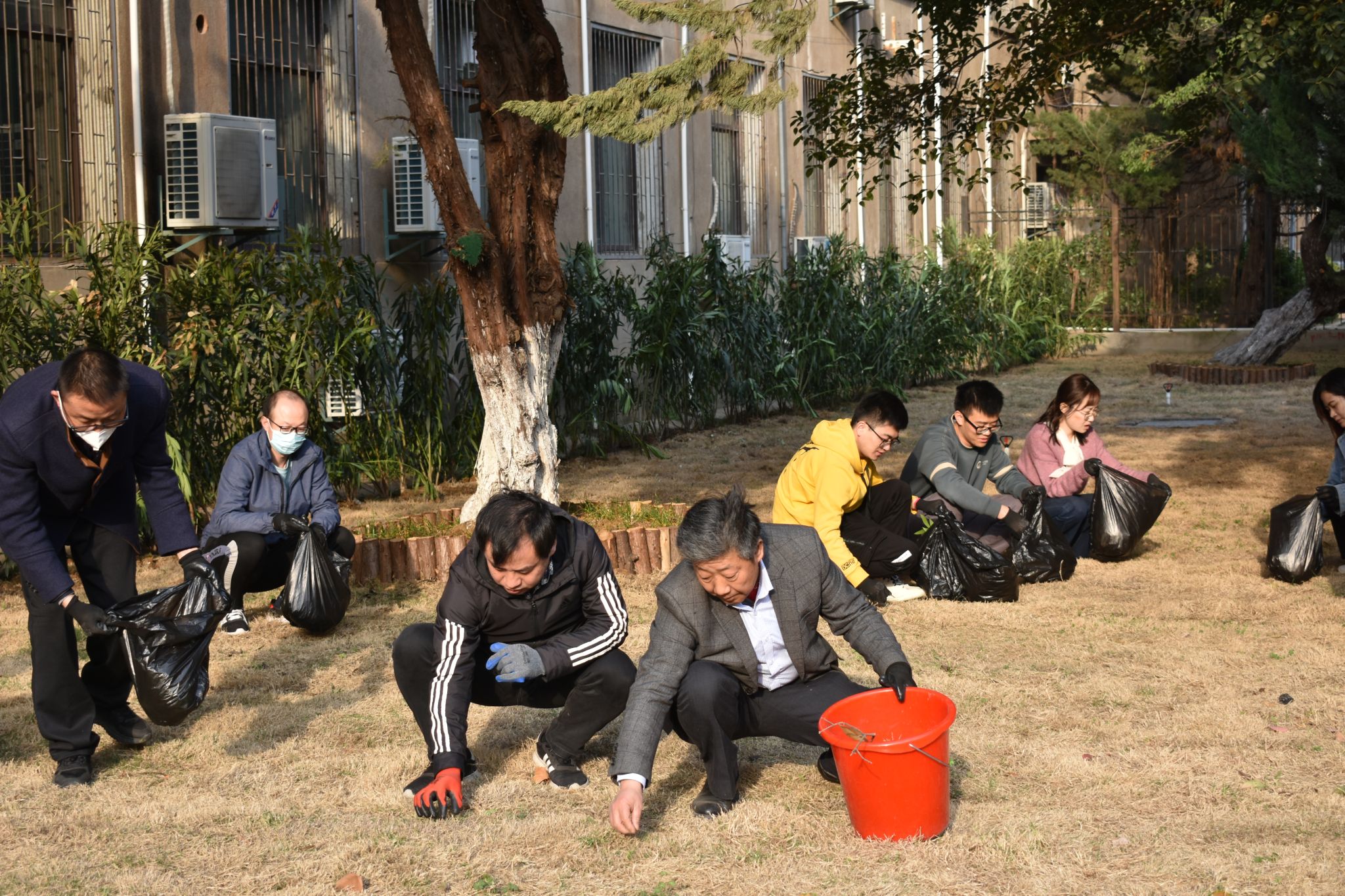 老师们戴着手套,拿着垃圾袋,迅速投入到拔草、清理工作中。个个干劲十足,争先恐后,不怕脏、不怕累。一堆堆落叶被清扫,一颗颗杂草被连根拔起,落叶和杂草以及垃圾被装入黑色垃圾袋,统一丢到垃圾箱中。