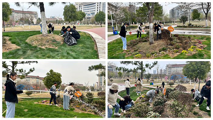 全员参与,谱写“爱卫”新篇章。为进一步推深做实爱国卫生运动,学院以劳动教育为切入点,将学院公共区域划分为四季小花园、劳动小天地、经管楼内、楼前广场、西侧、东侧、北侧7块劳动责任区,采取“支部+班级”按季度承包形式进行全面清理维护。截至3月16日,学院已开展3次劳动教育活动,共计3个党支部、21个班级、200余师生参加,在“四季小花园”“劳动小天地”播花种、灌溉水,对责任区的垃圾杂物、枯枝落叶、桌椅板凳进行全面清洁整理,掀起全员劳动高潮。