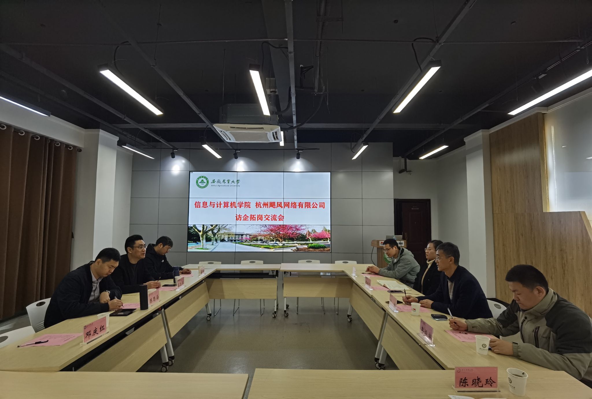 本网讯 为持续推动2023届毕业生实现更充分更高质量就业,3月17日,信息与计算机学院党政领导、系(部)教师代表与杭州飓风网络有限公司董事长陈思海等在校易班发展中心开展访企拓岗交流。