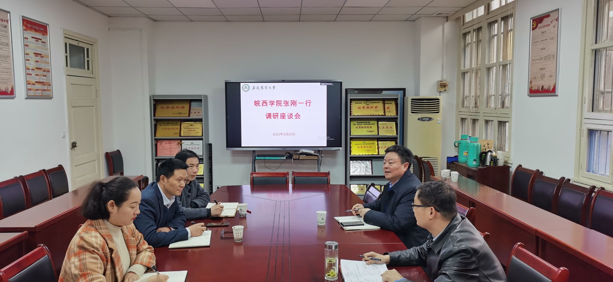 会上,曹成茂对张刚一行表示欢迎,并简要介绍了学校近年来课程建设情况,以实例分享了学校在一流本科课程申报中的经验。他建议以“质量为本、分类推荐、注重实效、广泛参与”为基本原则,以“高阶性、创新性、创新度”为金课标准,遴选优秀课程进行培育。张刚邀请我校相关老师至皖西学院讲解一流课程申报经验,希望两校可以进一步加强交流与学习。