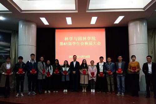 本网讯11月16日晚,林学与园林学院在林学楼一楼报告厅成功举办了第41届学生分会换届表彰大会。院团委老师及全体学生会成员参加会议。