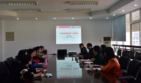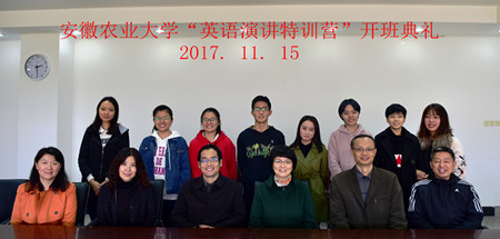 本网讯11月15日,外国语学院在外语楼506会议室举行“英语演讲特训营”开班典礼。教务处副处长李玮、外国语学院党委书记姚莉、副院长孙志农、王玉明(兼特训营专业指导),指导团队负责人冯晓英副教授、指导教师杨进以及特训营首批学员,来自全校2017级不同专业的8名同学参加了典礼。典礼由姚莉主持。