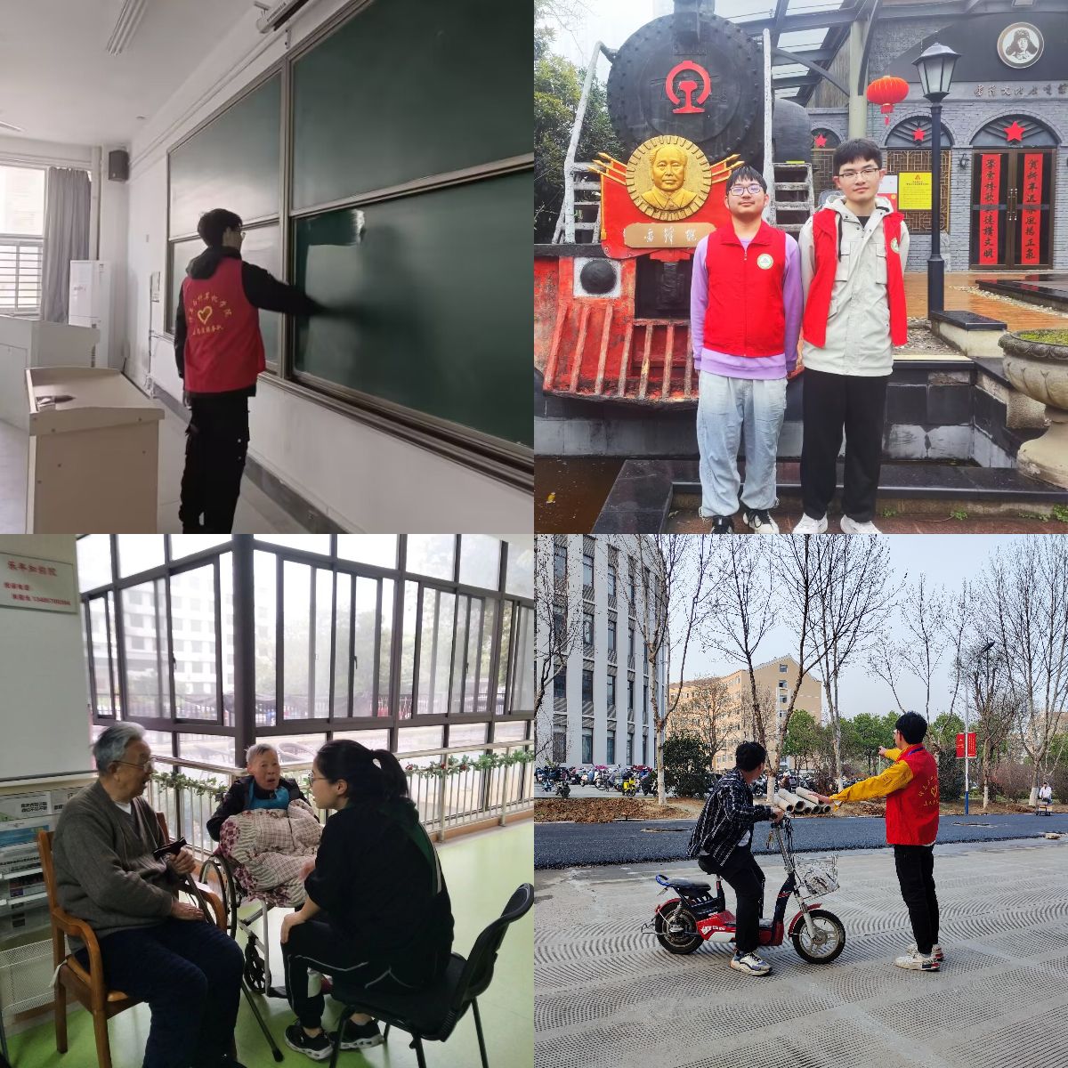 开展志愿服务,争做志愿先锋。党旗所指就是团旗所向。学院团委通过成立校园综合整治工作学生党员志愿者队,组织150余名学生党员骨干在维护校园交通、环境清扫等活动一线;组织学生会骨干深入宿舍,每周定期开展卫生督查检查工作;组织广大青年深入社区,开展“摩登老人”志愿服务活动等形式,开展志愿服务活动20余次、参与人员1500余人次,以实际行动响应诠释“奉献、友爱、互助、进步”的志愿精神,全力续写更为感人的新时代雷锋故事。