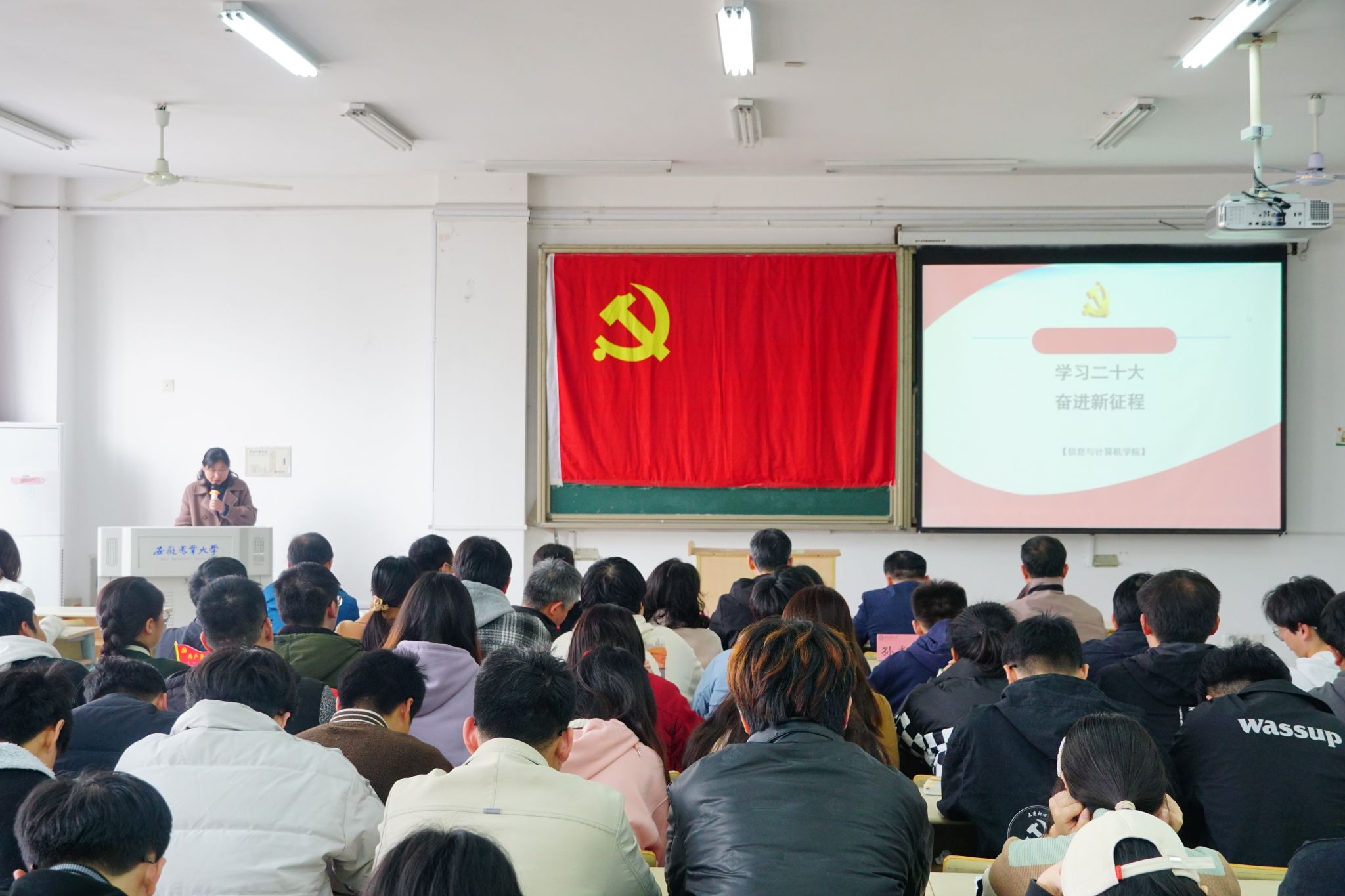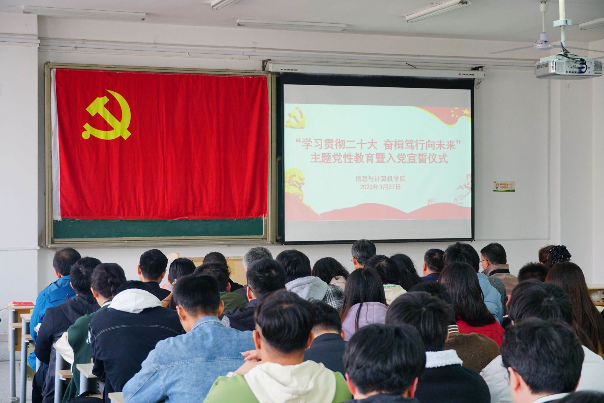 本网讯 3月27日中午,信息与计算机学院开展了“学习贯彻二十大 奋楫笃行向未来”主题党性教育暨入党宣誓仪式,学院党委委员、党支部书记、全体学生党员、教工党员代表参加了仪式。