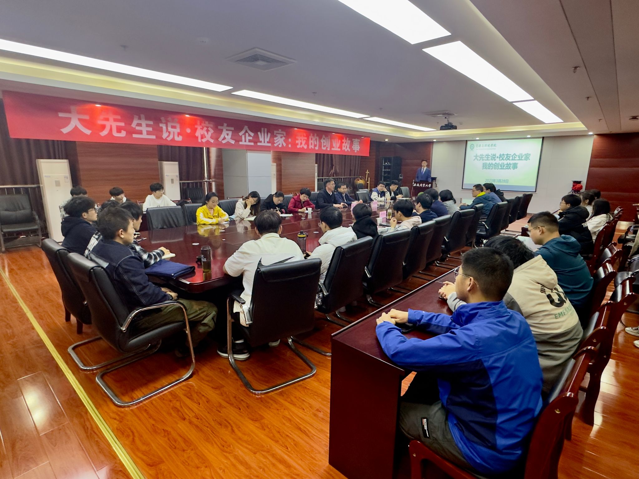 大先生说·校友企业家:我的创业故事经验分享会。“再次回到母校,看到母校变化很大,依旧很亲切”“一声安农,一生安农”...交流会上,校友们如数家珍般回顾了自己在母校学习和生活的难忘瞬间,深情追忆了在校期间与老师、同学们建立的深厚情谊,深切表达了对母校多年栽培的感谢和对母校未来发展的深深祝福,并结合自己的亲身经历,围绕“如何坚持专业学习、如何自我分析及如何培养创新创业思维”等与在场师生进行了互动和交流,分享了许多实用的“过来人”经验。