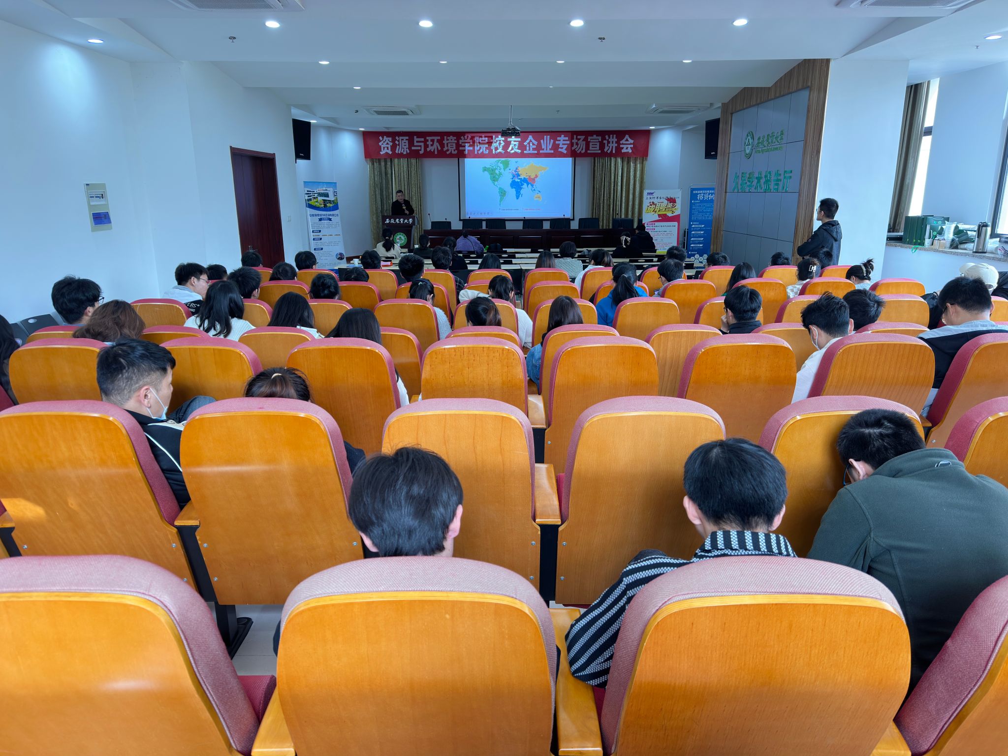 “职”等你来·校友企业专场招聘会。校友企业专场招聘会上,安徽珍珠水泥集团股份有限公司、安徽蓝鼎环保能源科技有限公司、安徽珍昊环保科技有限公司、上海轩浦净化科技有限公司、安徽景熙规划咨询有限公司的代表依次上台从公司的发展历程、企业文化、业务范围、晋升制度、福利待遇、岗位需求等方面进行了宣讲,并就学生提出的问题进行了积极的回应。优秀校友的事迹让同学们深受鼓舞,在场同学投递了简历并参加面试。