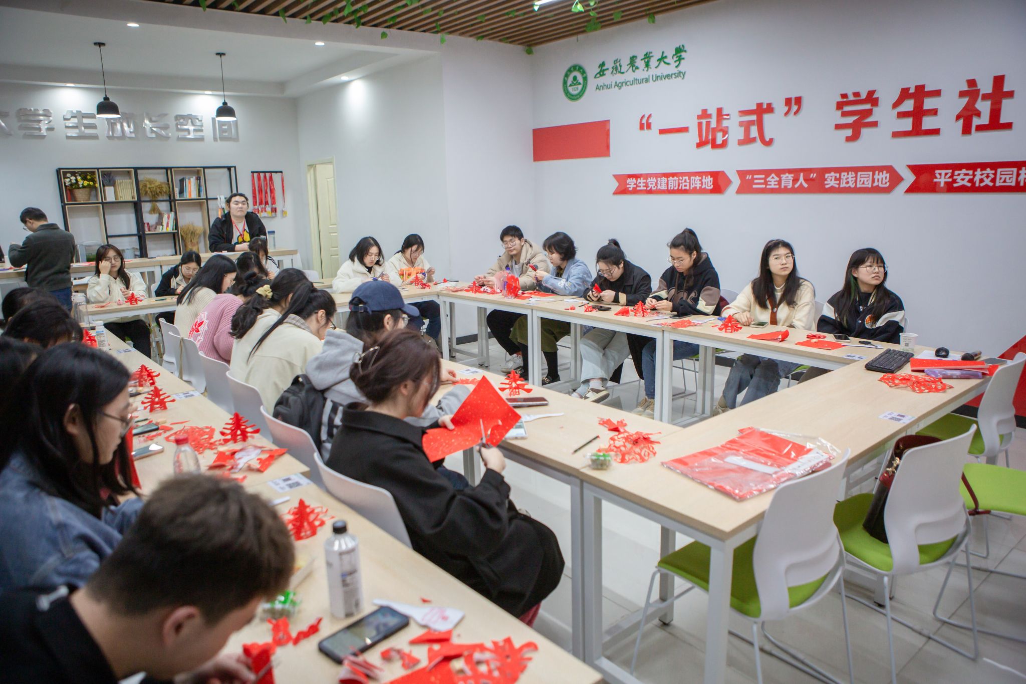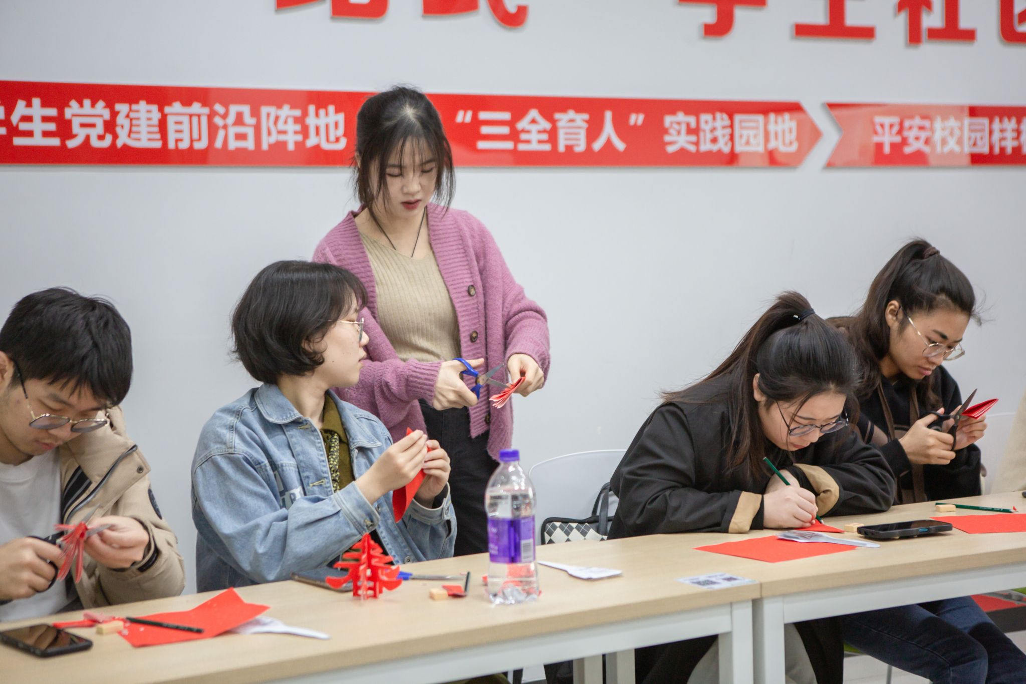 本网讯 3月29日晚,人文社会科学学院在大学生公寓“一站式”学生社区服务中心开展“展剪纸韵 传民俗情”民俗文化体验活动。活动由学校艺术部教师张涵主持,学院专职辅导员及部分学生代表参加了此次活动。