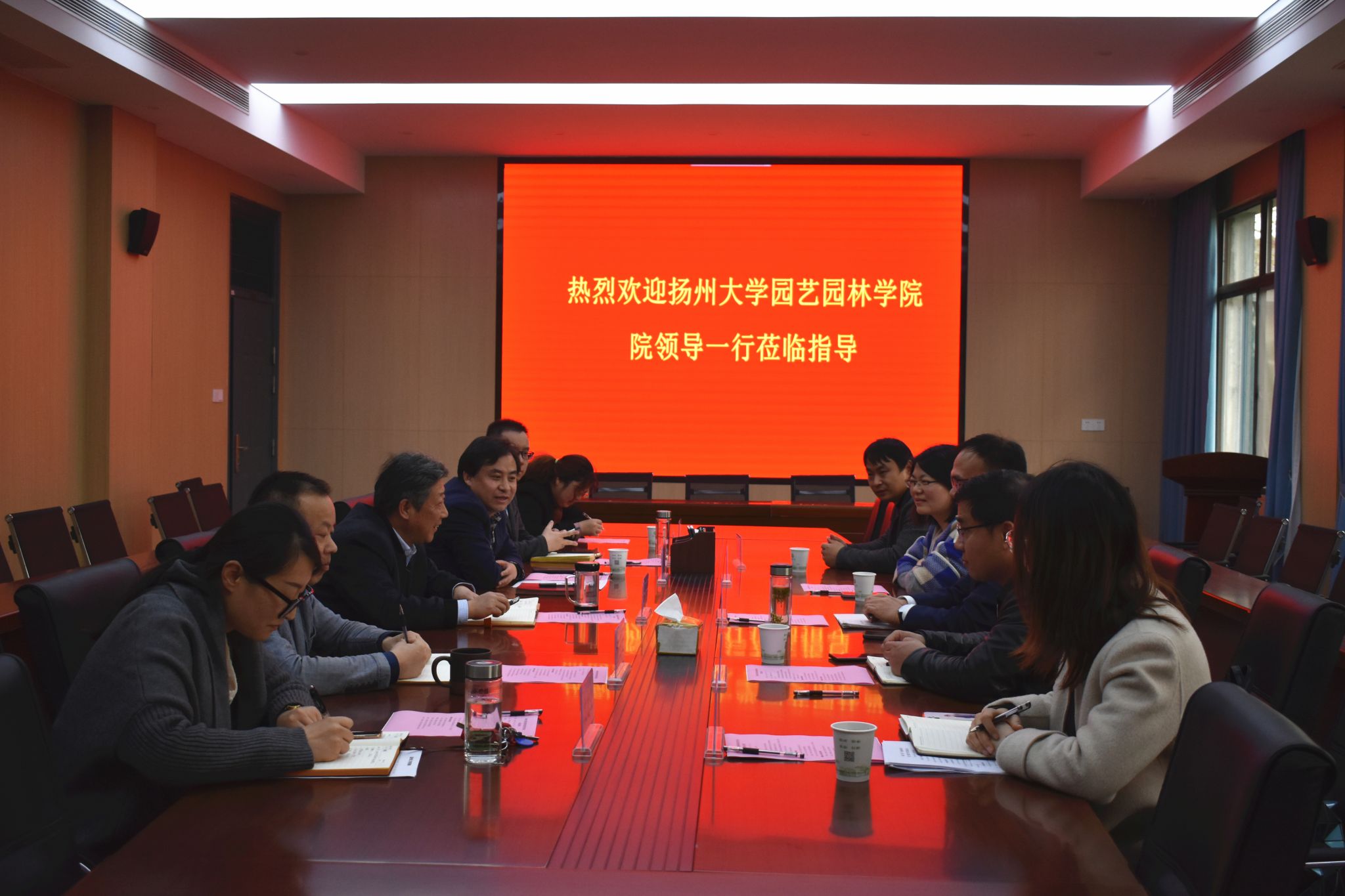 学院党委书记朱绍友代表学院对李卫星一行来院交流调研表示热烈欢迎,并介绍了学院基本概况,希望双方今后多多交流,共同探索学院发展新思路、新途径,吸收借鉴彼此良好的办学经验,更好地促进两院内涵式发展。院长武立权对园艺学院的发展历史、办学规模、人才培养等作了详细介绍。
